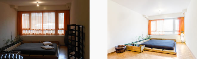 Clichés d'un studio, "avant" et "après", montrant la différence entre un instantané et une photographie utilisant certaines des techniques traitées dans cette série.