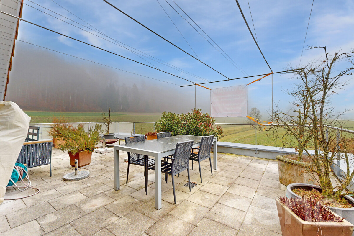 AussenbereichEin besonderes Highlight ist die grosszügige Terrasse mit wunderschöner Aussicht ins Grüne - perfekt zum Entspannen, Geniessen und Verweilen.
