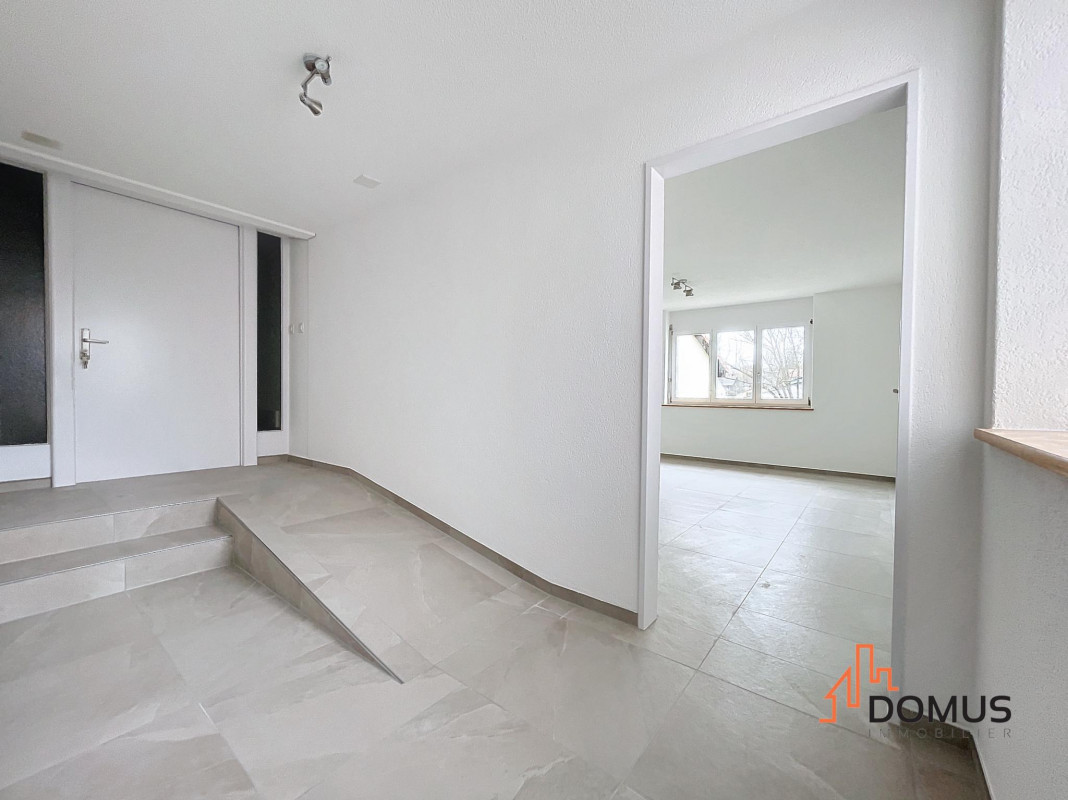 Situé au 1er étage d'une petite PPE soignée, ce 4.5 pièces entièrement rénové de 110 m² offre de beaux volumes, une luminosité agréable et un confort moderne prêt à vivre.