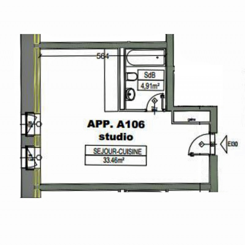 Ce logement se compose d'une cuisine ouverte sur la pièce à vivre et une salle de bain/WC.