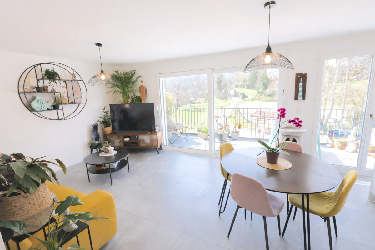 Cet appartement comprend un grand hall d’entrée de 13 m² avec armoires murales, un spacieux séjour très lumineux de 28,5 m² donnant accès au balcon de 11 m² avec une vue magnifique sur le château d’Attalens sans aucun vis-à-vis, ainsi qu’une cuisine entièrement agencée et ouverte sur le séjour.
