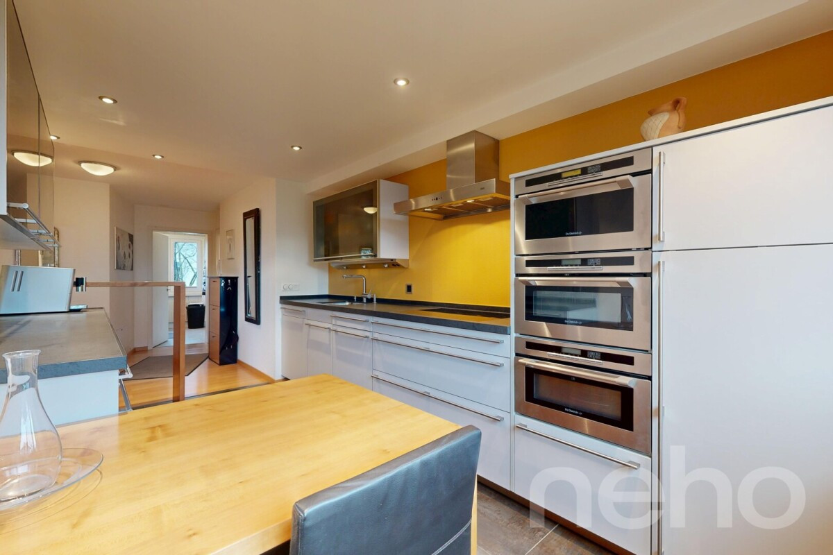 Die halb offen gestaltete Küche wurde qualitativ hochwertig saniert und ist durch eine Wand klar vom Wohnbereich getrennt. In der Küche ist ein pflegeleichter Fliesenboden verlegt, während im Wohnzimmer sowie in den Schlafzimmern Parkettboden für ein angenehmes Wohngefühl sorgt.