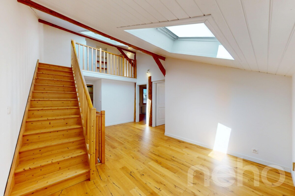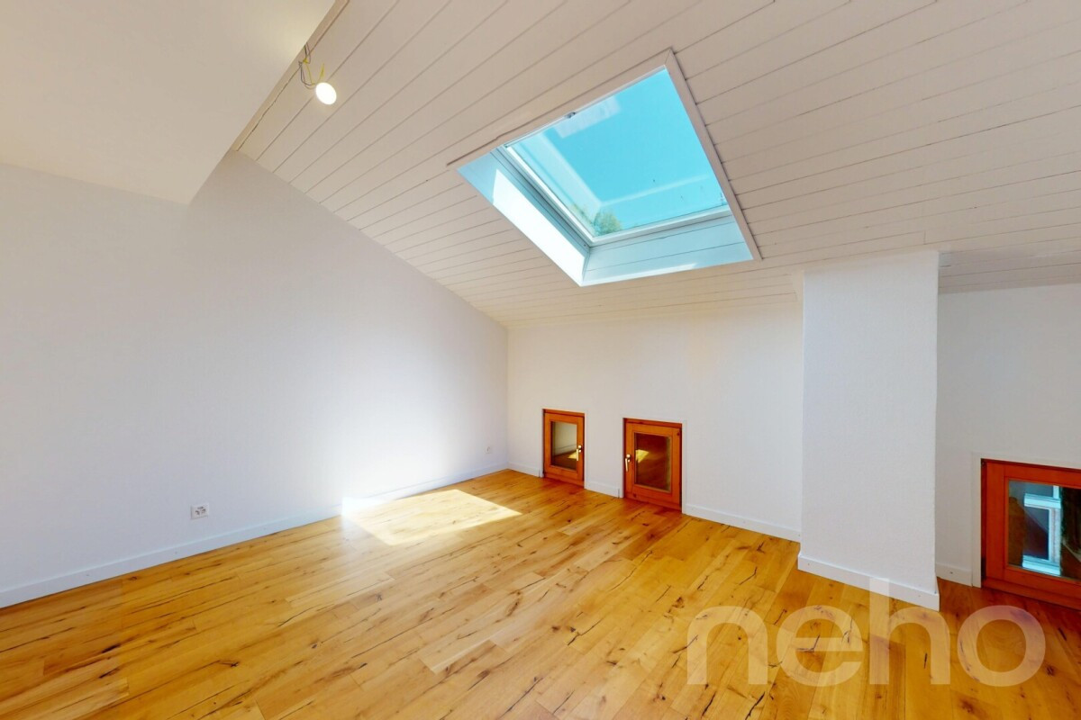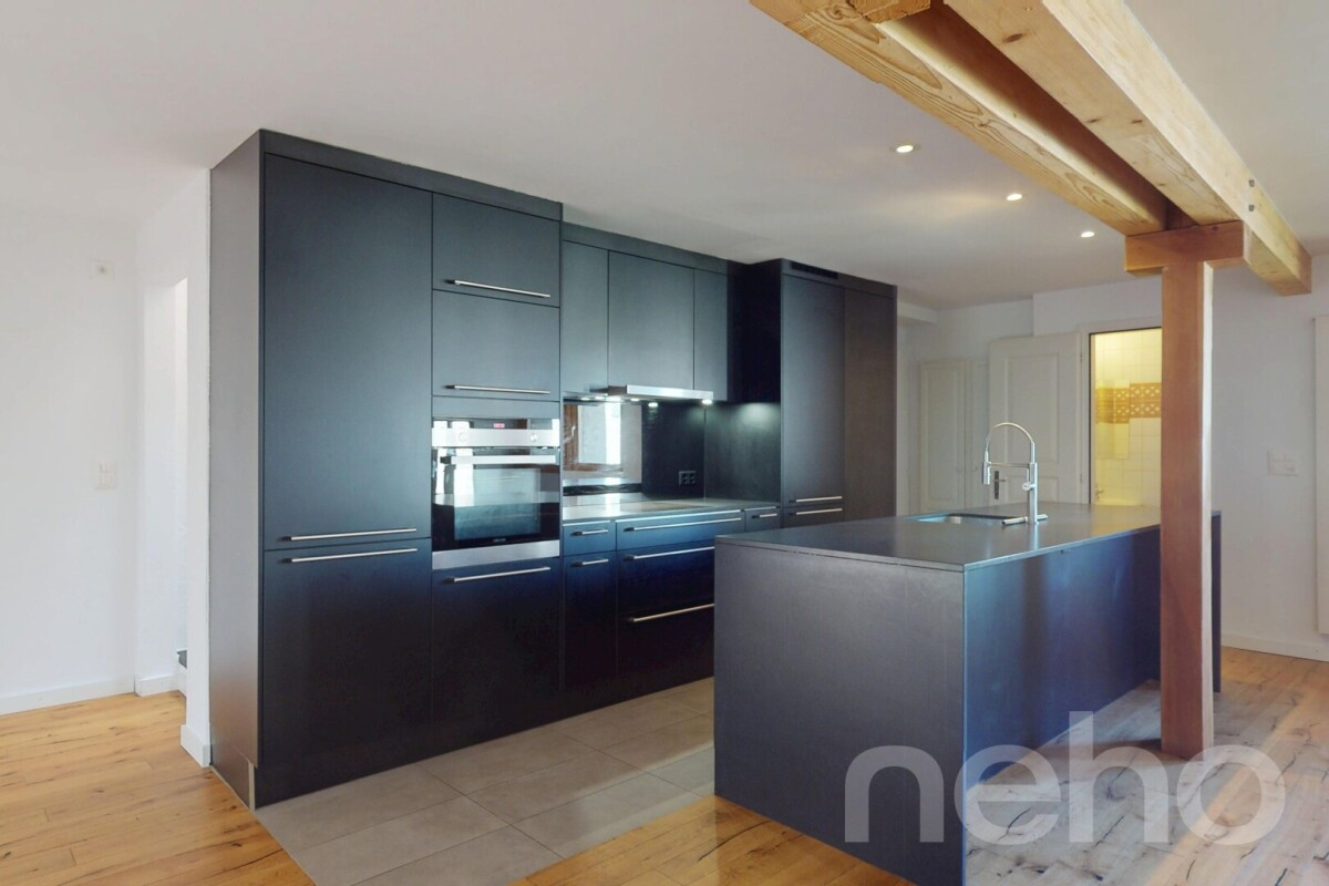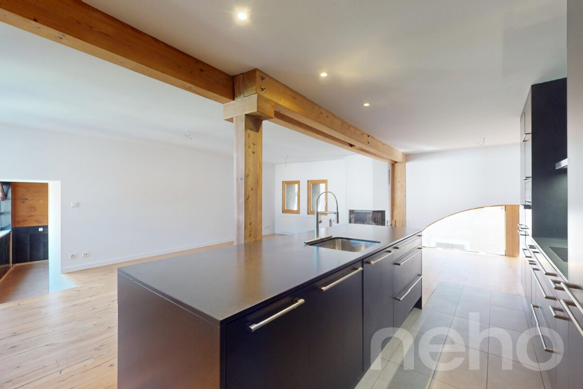 Entièrement rénové avec des matériaux de qualité, ce bien de 5.5 pièces sur trois niveaux présente un potentiel immense pour vos projets futurs. Vous serez charmés par l'intégration harmonieuse d'une cheminée et d'une loggia et d'un grenier sur deux niveaux, ajoutant charme et fonctionnalité à l'ensemble.