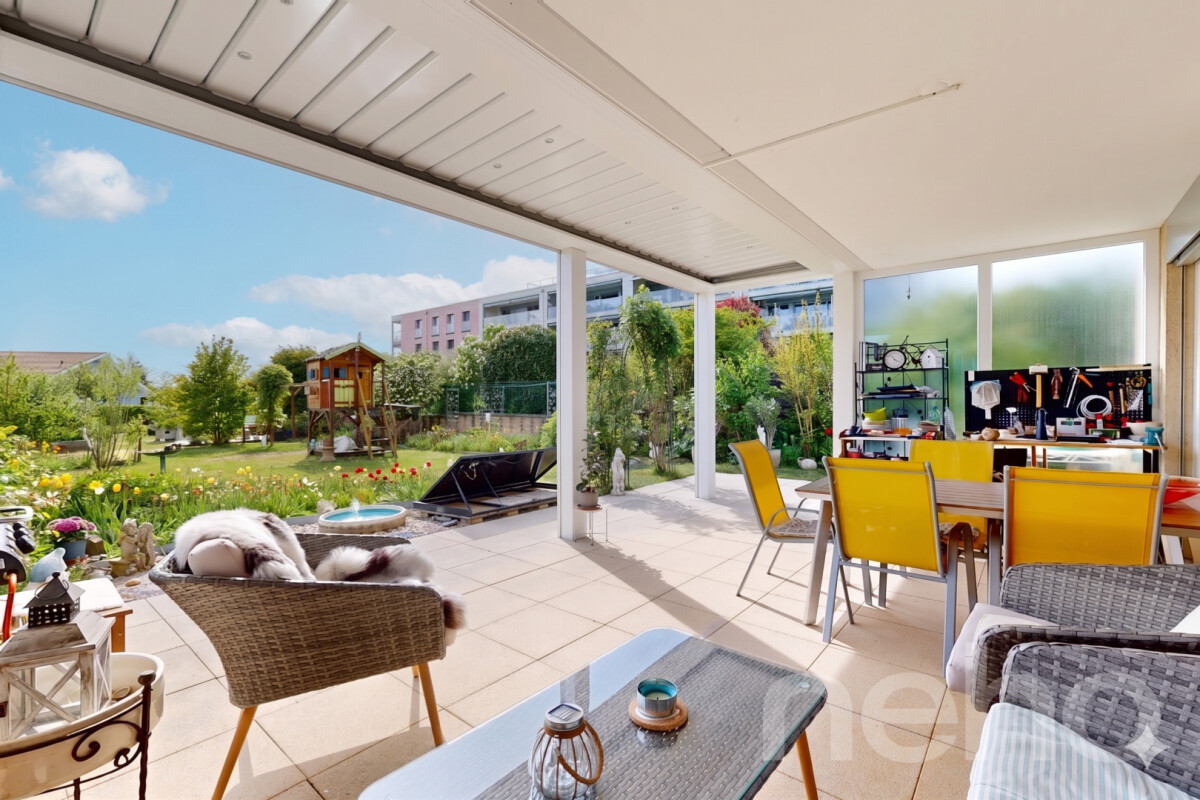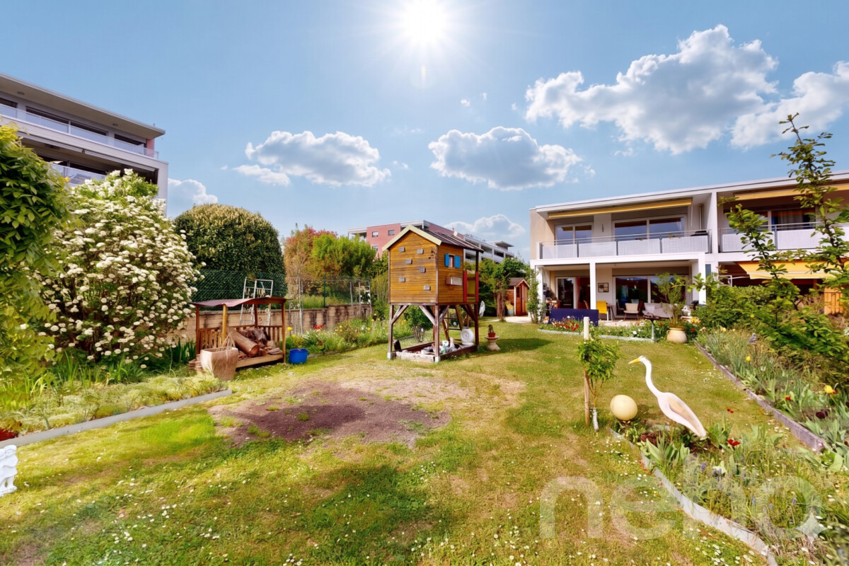 Discover this beautiful 4.5-room flat, ideally situated in a quiet residential neighbourhood in Bussigny. You'll be charmed by its pleasant aspect and exceptional light, offering an ideal living environment for families. Nestled close to all amenities, this apartment boasts a magnificent garden of over 400 m², beautifully planted with flowers and trees, featuring an enchanting terrace area in the middle of the garden, in addition to the apartment's own terrace.You will find a large, bright living area with a fully fitted open-plan kitchen, providing direct access to the terrace and garden. The sleeping area comprises three good-sized bedrooms and two bathrooms. In addition, a garage space, an outdoor parking space and a large cellar complete this property.Contact us today to arrange a viewing and discover for yourself the exceptional charm of this home.