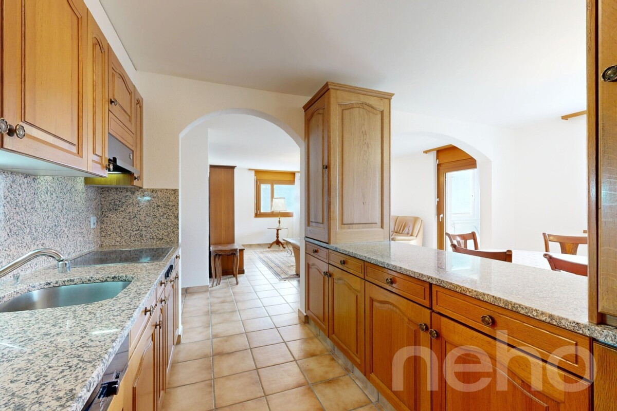 Découvrez un appartement exceptionnel, entièrement rénové, idéal pour les familles à la recherche d'un espace de vie optimisé et bien entretenu. Avec ses 4.5 pièces partiellement meublées, cet appartement offre une exposition agréable vers le sud-ouest, permettant de profiter d'une vue imprenable sur les montagnes.Situé au deuxième étage, l'appartement s'étend sur une surface habitable nette de 101 m². Il dispose de trois chambres spacieuses et de deux salles d'eau avec bain et douche, garantissant un confort optimal pour toute la famille. L'attrait supplémentaire d'un garage indépendant et d'une place extérieure vous assure commodité et sécurité pour vos véhicules.Profitez de la proximité immédiate de toutes les commodités, facilitant ainsi votre quotidien. Que ce soit pour faire vos courses, emmener vos enfants à l'école ou simplement profiter des activités de loisirs environnantes, tout est à portée de main.Ne manquez pas cette opportunité unique d'acquérir un bien qui allie confort moderne et cadre enchanteur. Contactez-nous dès aujourd'hui pour organiser une visite et découvrir par vous-même le charme indéniable de cet appartement exceptionnel.
