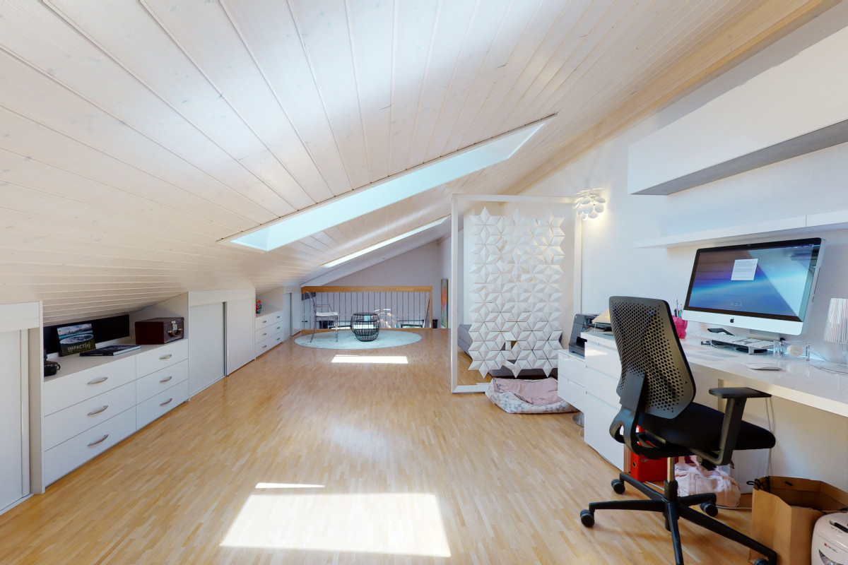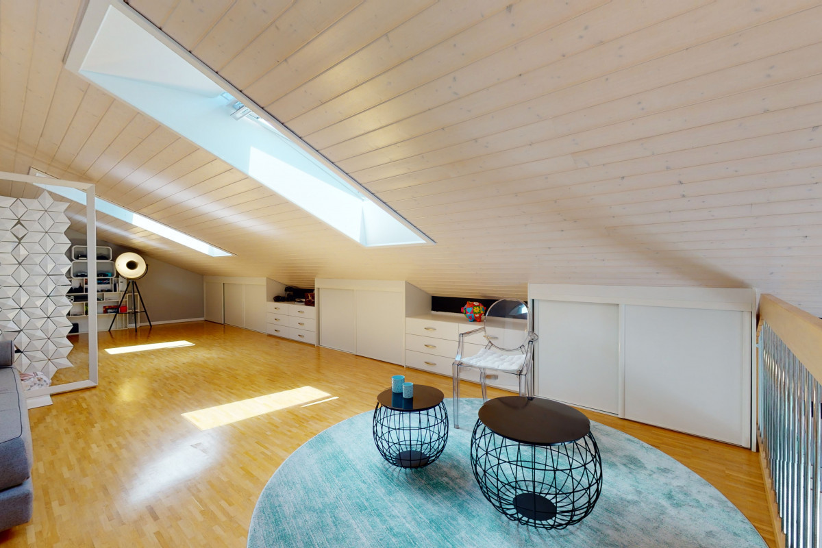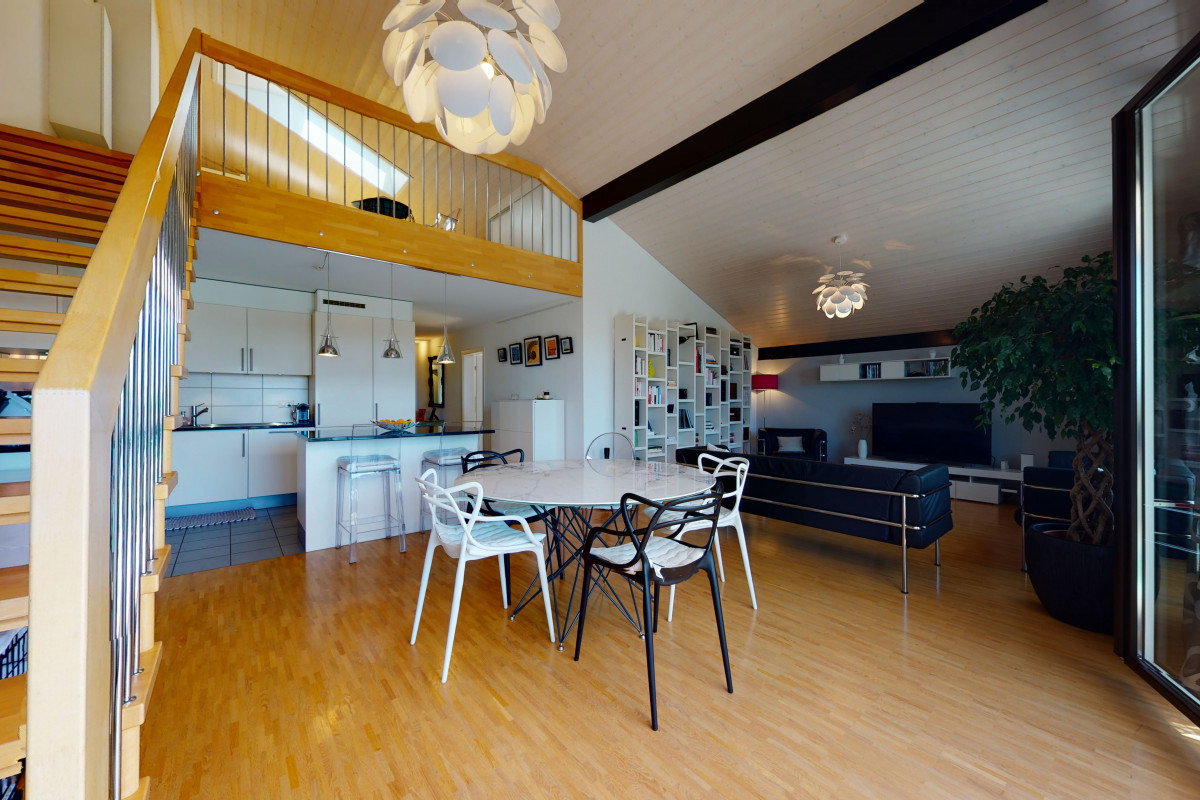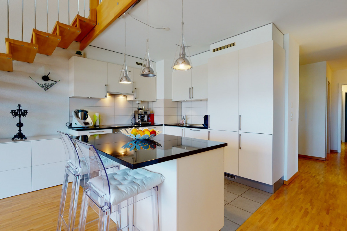 Situé dans un quartier calme et proche de toutes commodités, ce beau duplex de 4,5 pièces est composé de 3 chambres, 2 salles de bain, un WC séparé, et d'une cuisine ouverte donnant sur un vaste séjour/salle à manger lumineux. Idéalement orienté sud et grâce aux grandes baies vitrées, vous profiterez d'un bel ensoleillement tout au long de la journée. Une belle pièce sous les combles ainsi qu'un grand balcon viennent compléter ce bien.
