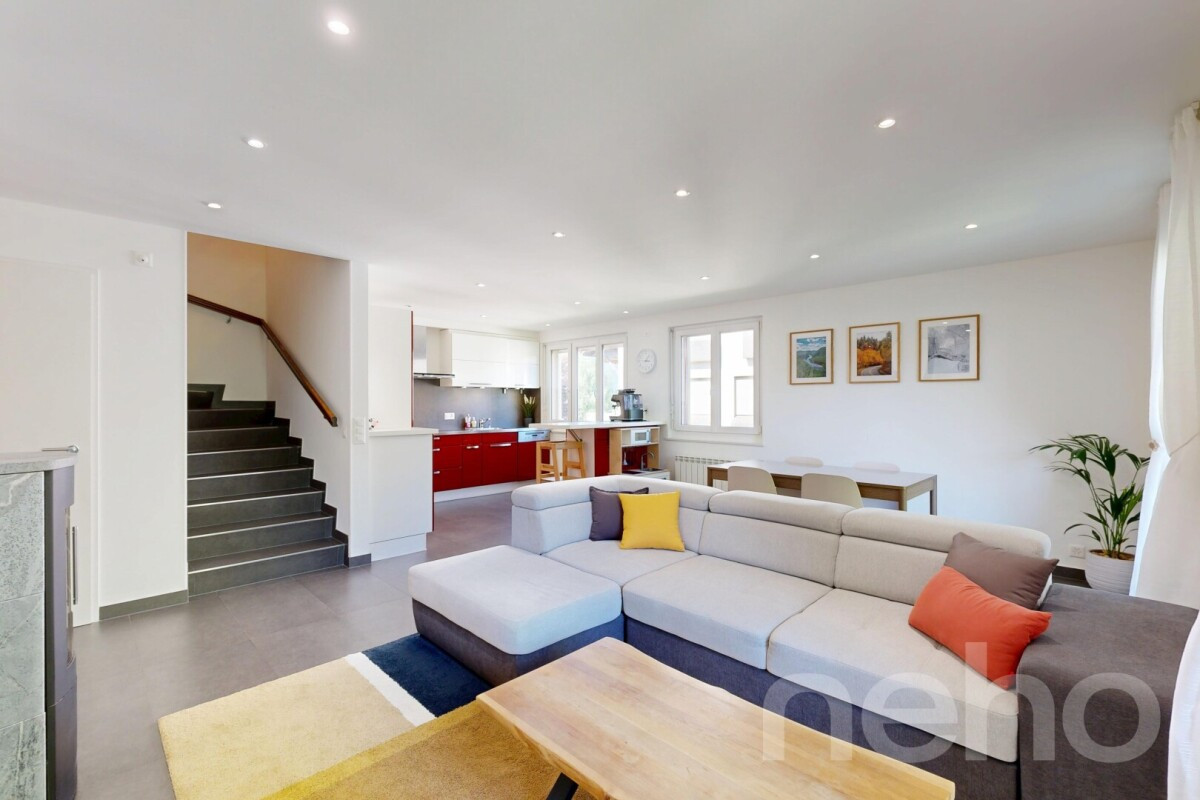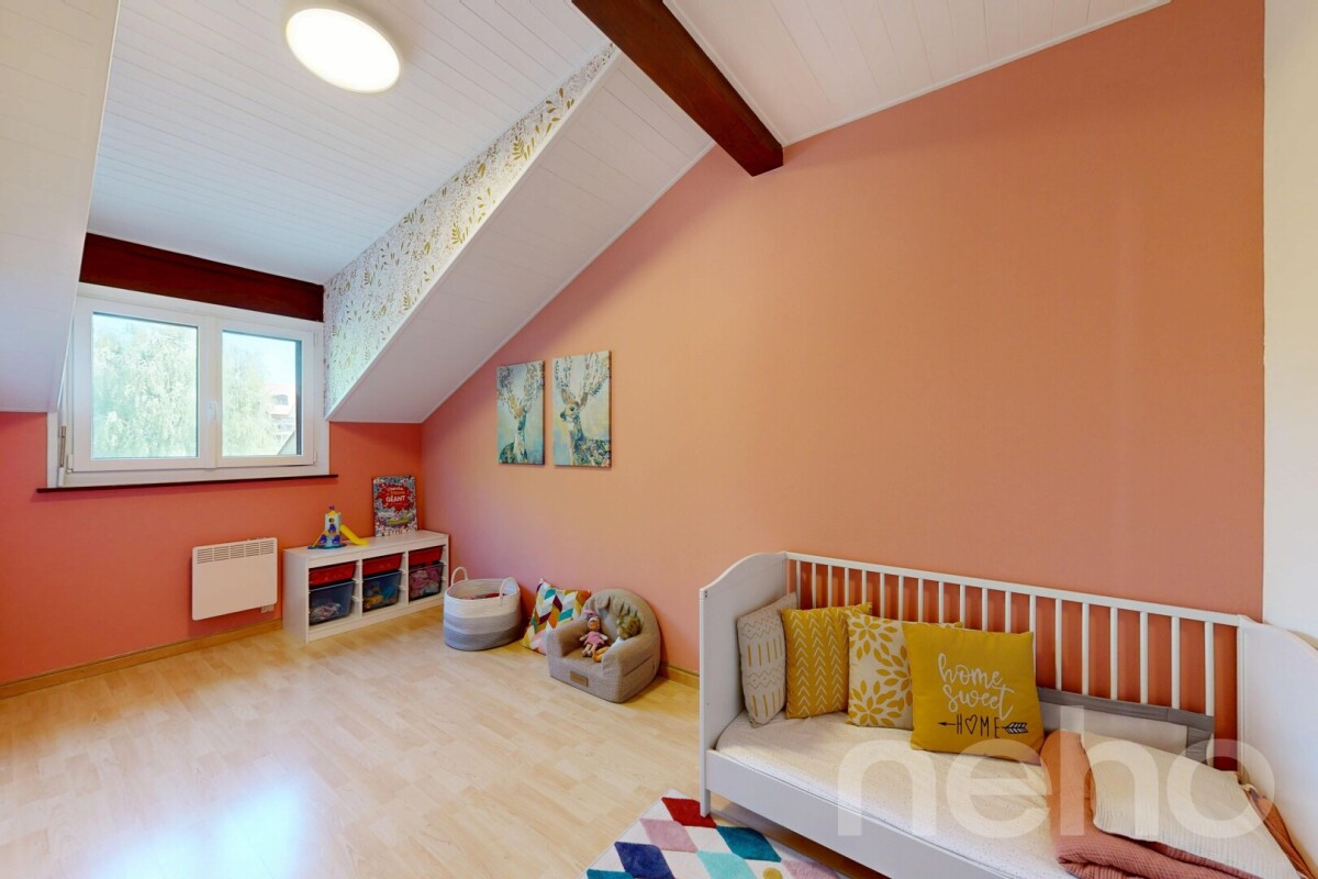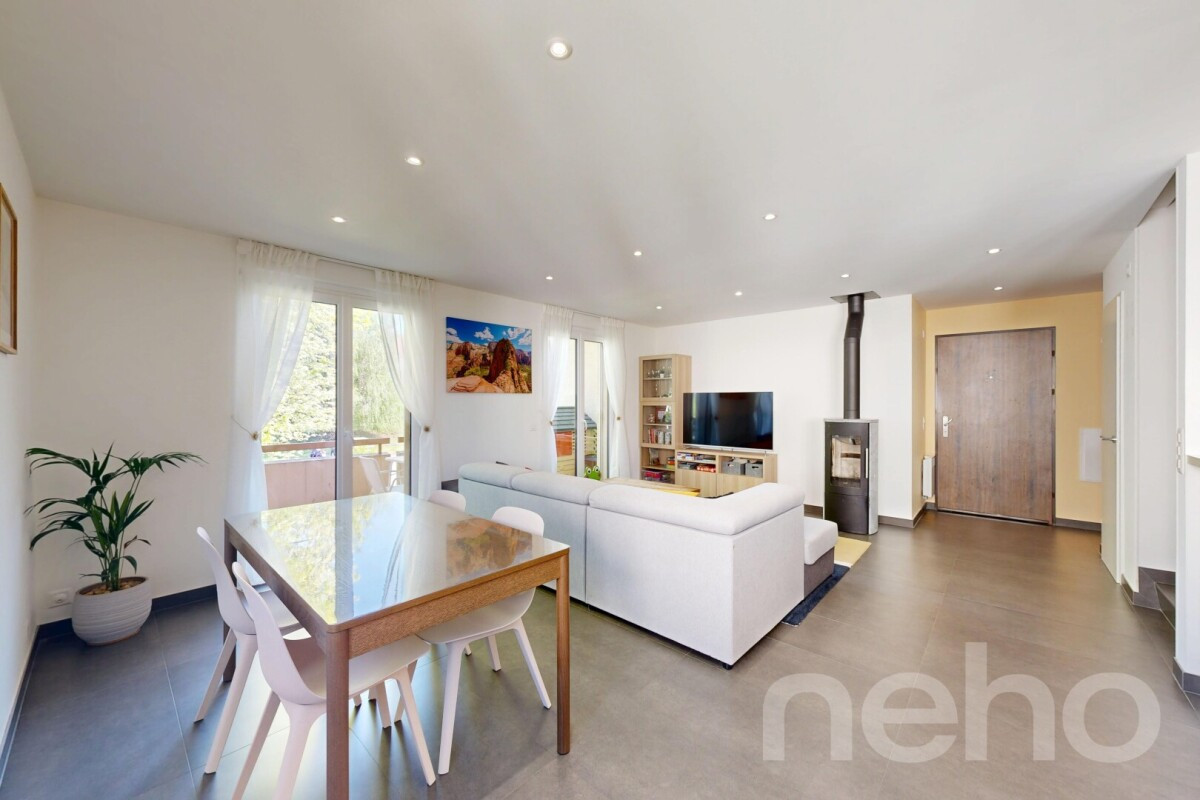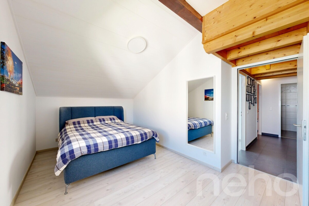 Au c?ur d'un quartier résidentiel calme et verdoyant de Chavannes-de-Bogis, ce beau duplex en attique s'intègre au sein d'une petite copropriété conviviale. Orienté plein sud-ouest, il bénéficie d'une luminosité remarquable tout au long de la journée.L'espace de vie, parfaitement agencé, déploie un vaste séjour ouvert sur la salle à manger et la cuisine, le tout réchauffé par un poêle à bois qui apporte une atmosphère chaleureuse en hiver. Les portes-fenêtres s'ouvrent sur un généreux balcon, tandis qu'un cellier et un WC visiteurs complètent ce niveau.À l'étage, trois chambres lumineuses s'articulent autour du palier, dont une suite parentale dotée de sa propre salle de bain et d'un dressing. Une seconde salle d'eau avec douche dessert les deux autres chambres. Sous les combles, un volume supplémentaire offre un espace pratique et polyvalent, idéal pour aménager un atelier, un bureau ou une zone de rangement généreuse.L'appartement a fait l'objet d'un entretien méticuleux et de rénovations régulières : fenêtres en triple vitrage, salles d'eau modernisées, peintures rafraîchies, nouveaux radiateurs et électroménager récent. L'isolation du sous-sol a été refaite en 2022.Un grand jardin commun partagé entre les copropriétaires, une cave privative et une buanderie collective complètent les prestations de ce bien.Une place de parc dans le garage souterrain est disponible en sus pour CHF 30'000.-.
