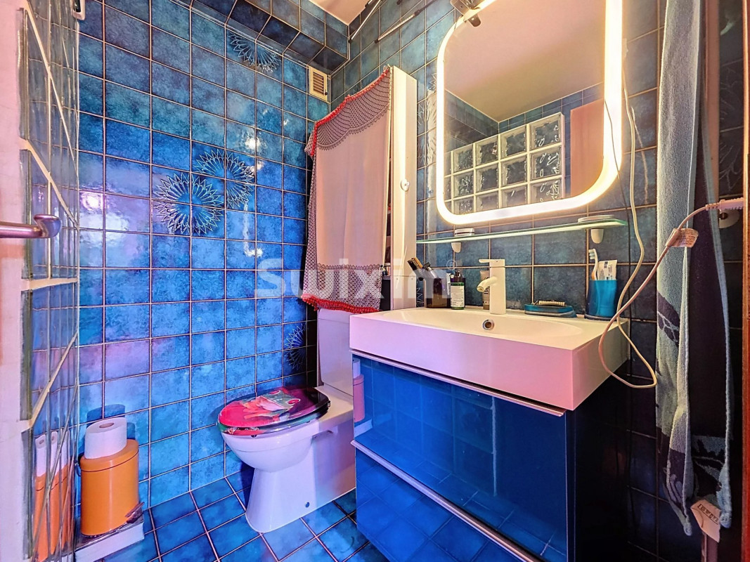 L'appartement offre un vaste séjour baigné de lumière avec cheminée fonctionnelle, une cuisine fermée à rénover ou avec la possibilité de l'ouvrir sur le salon, une suite parentale avec salle de bains et WC. Le hall d'entrée équipée d'armoires encastrées dessert une seconde salle de douche avec WC, et une chambrette ou bureau.