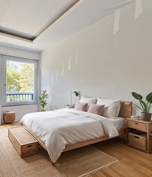 - Salle de douche : La salle de douche est contemporaine et élégante avec deux portes coulissantes. Une porte mène à la chambre lumineuse et aérée, tandis que l'autre s'ouvre sur le salon, créant un flux sans faille entre les espaces.