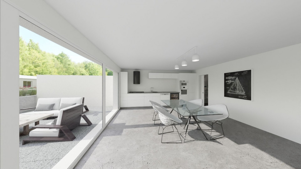 À l'extérieur, une terrasse prolonge l'espace de vie, parfaite pour profiter du soleil et des beaux jours.