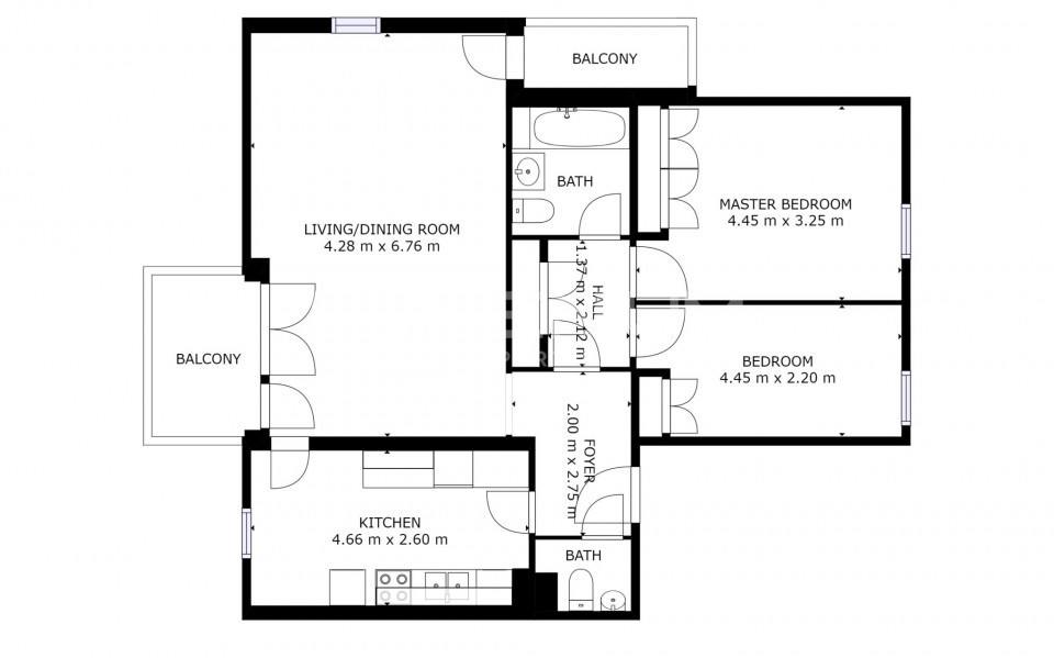 - Une entrée, un WC visiteurs, une cuisine, un salon séjour avec accès sur deux balcons, un dégagement avec placards, deux chambres avec placards ainsi qu'une salle de bains.