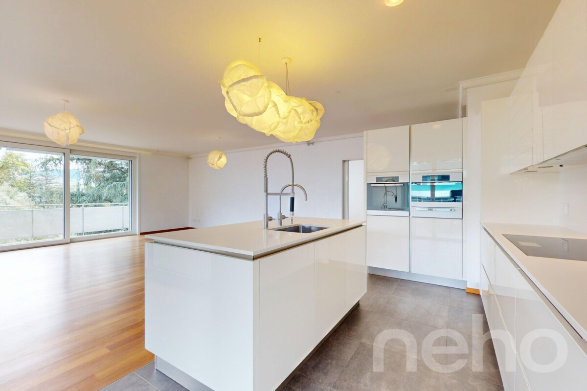 Dans un cadre verdoyant et raffiné, ce duplex moderne et design de 6.5 pièces en attique, orienté sud, sud-est et ouest, bénéficie d'un emplacement idéal au coeur de la prisée région de Terre-Sainte, sur La Côte.Possibilité de transformation en 8.5 pièces.Les matériaux utilisés sont d'une qualité exceptionnelle, notamment le revêtement de sol en Shou Sugi Ban. L'appartement offre des...
