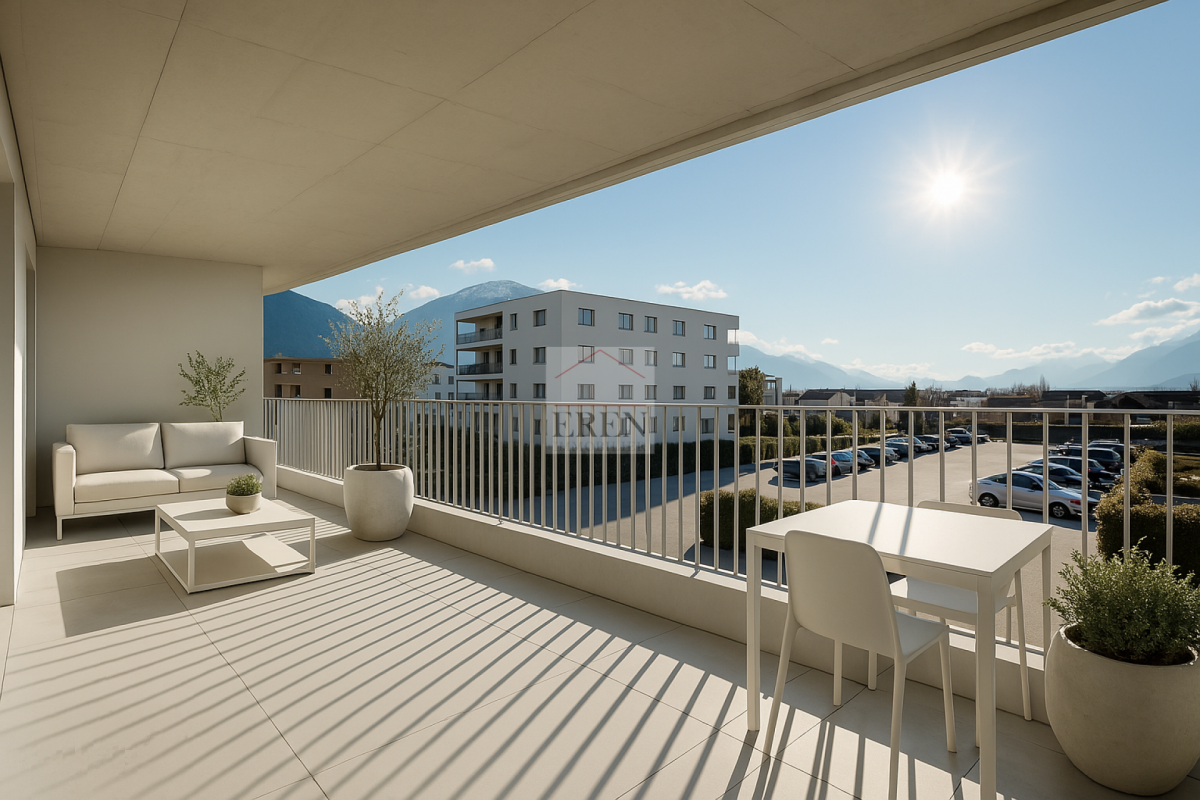 Appartement 3,5 pièces neuf avec terrasse de 15 m2 et jardin pelouse de 21 m2Résidences Alegria à Uvrier (Sion)Nouvelle promotion de plusieurs petits immeubles contemporains à 2 pas de la zone commerciale d'Uvrier (commune de Sion) idéalement situé à l'entrée du village dans une zone résidentielle et ensoleillée à moins de 5 minutes de la capitale valaisanne Sion.Cette nouvelle promotion...