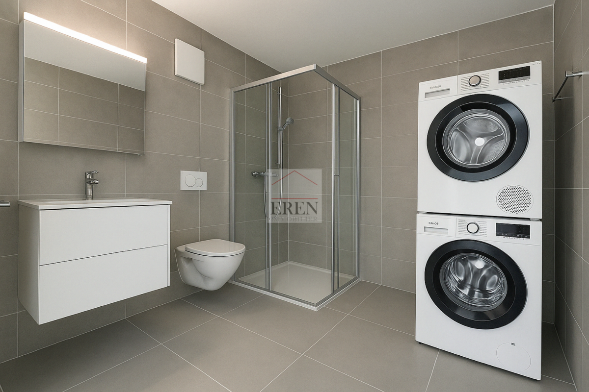 • Salle de bain avec douche et colonne de lavage (lave-linge et sèche-linge compris)