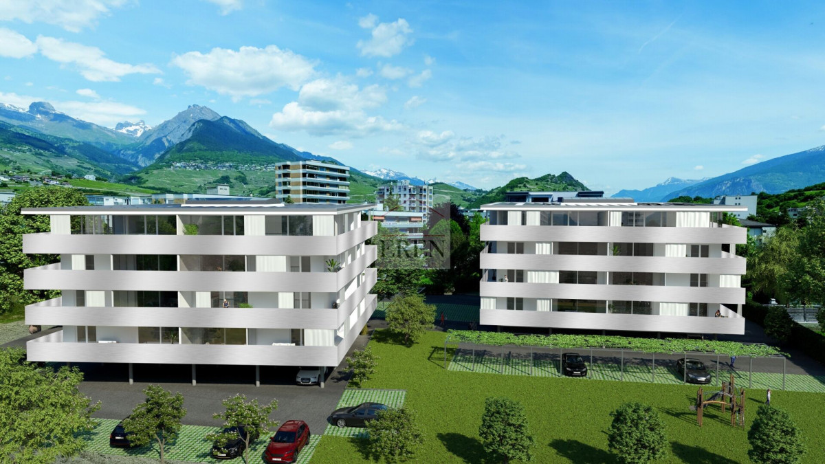 Nouvelle résidence d'appartements haut de gamme située à Conthey à 2 pas de toutes commodités dans une zone résidentielle calme (zone 30kmH) et ensoleillée en plein coeur du Valais central.