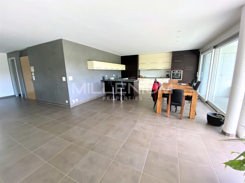 Situé dans un secteur résidentiel sécurisé, ce très bel appartement de 133m² offre de beaux volumes dans un style contemporain et des pièces très lumineuses grâce à de grandes baies vitrées donnant sur une belle terrasse et jardin 110 m².