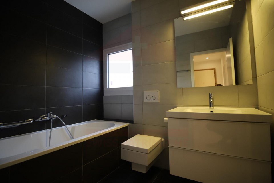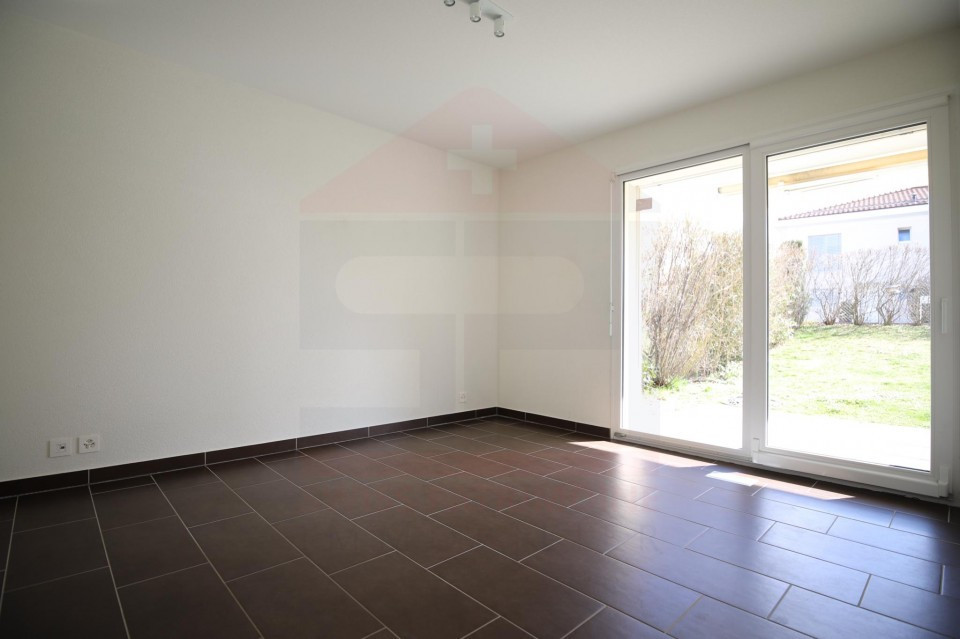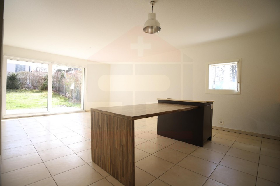 Dans une belle résidence construite en 2011 proche des transports, cet appartement de 5 pièces de 110m2 en rez-de-jardin se compose d'une entrée avec toilette visiteurs, une cuisine équipée et aménagée, un séjour donnant sur terrasse et jardin de 102 m2 à usage privatif, 3 chambres avec deux salles de bains et wc, une buanderie. En sous-sol deux caves et deux places de parking, local vélos, buanderie communes. Charges PPE : CHF623.- Disponible de Suite ! Notre Avis : PPE récente - Belle prestations - Etat Neuf