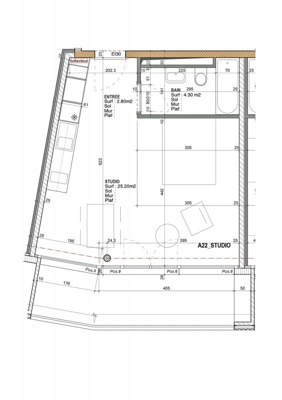 Ce studio récent se compose d'une cuisine ouverte sur la grande pièce à vivre avec accès au balcon et une salle de bain/WC.