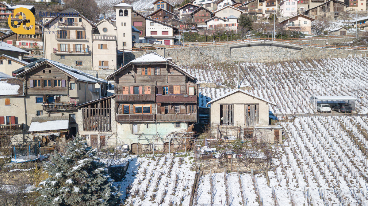 À rénover, cet immeuble offre plusieurs appartements, granges, et parcelles offrant une vue imprenable sur la vallée du Rhône. Les possibilités de rénovation sont vastes, avec un avant-projet disponible sur demande. Parking public à proximité.