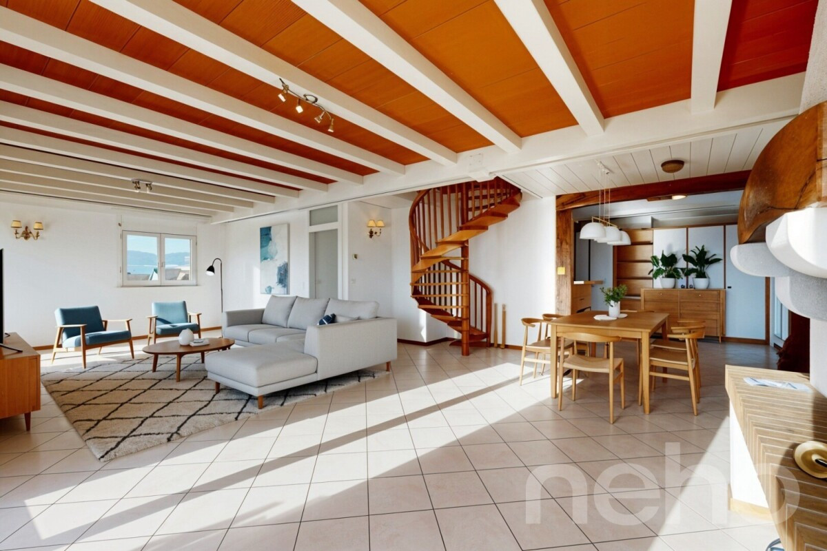 Magnifique duplex en attique de 4.5 pièces, ce bien rare conjugue volumes généreux, luminosité exceptionnelle et cadre de vie privilégié. Situé dans un environnement calme, il bénéficie d'une belle vue dégagée, sans aucun vis-à-vis, offrant un sentiment d'espace et de sérénité au quotidien.Déployé sur deux niveaux, l'appartement séduit par ses belles surfaces et son agencement harmonieux. Le spacieux séjour, baigné de lumière grâce à de larges ouvertures, constitue le c?ur de l'habitation. Agrémenté d'une cheminée, il invite à de chaleureux moments en famille ou entre amis. Les espaces sont fluides, aérés et parfaitement optimisés.Un espace bureau permet de concilier confort de vie et télétravail en toute tranquillité. Les chambres, lumineuses et bien proportionnées, complètent idéalement ce bien.Côté pratique, vous bénéficierez d'une cave, d'une cave à vin pour les amateurs, d'une place de parc extérieure ainsi que d'une place en garage souterrain.Un attique lumineux et élégant, idéal pour celles et ceux qui recherchent calme, vue et qualité de vie.