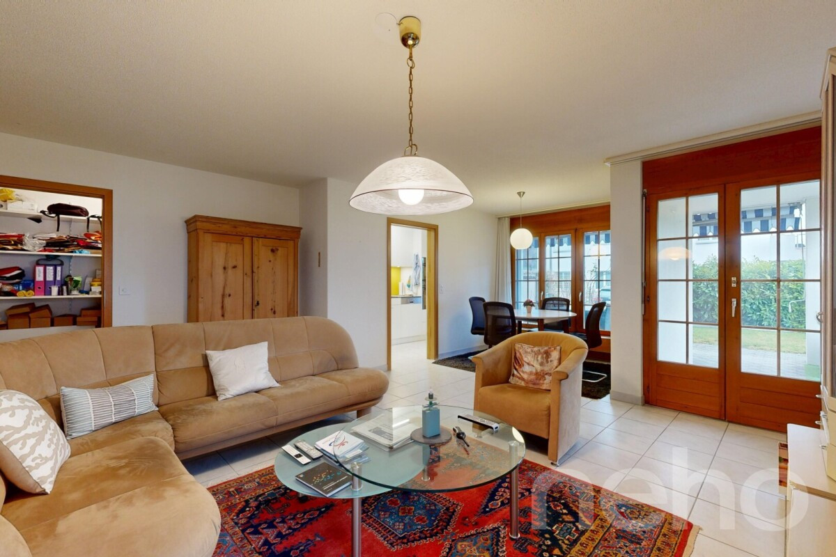 Diese attraktive Eigentumswohnung überzeugt durch ihren grosszügigen, liebevoll gestalteten Aussenbereich und einen durchdachten Grundriss mit viel Wohnkomfort. Die Gartenwohnung bietet eine Kombination aus Rasenfläche, einer gedeckten Terrasse und vielseitigen Anpflanzungsmöglichkeiten; perfekt für Gartenliebhaber und alle, die das Leben im Freien schätzen.Der Aussenbereich lädt mit einem Aussencheminée, sonnigem Sitzplatz mit Sonnenstoren zum Verweilen ein. Hier lassen sich entspannte Sommerabende, gesellige Stunden mit Freunden oder ruhige Momente im Grünen geniessen.Im Innern erwartet Sie ein offener Wohn- und Essbereich mit Cheminée, der eine angenehme Wohnatmosphäre schafft. Die Küche wurde 2024 erneuert und ist mit Backofen, Steamer sowie sämtlichen notwendigen Küchengeräten ausgestattet.Die Wohnung verfügt über zwei Zimmer. Der Teppichboden im Schlafzimmer wurde ebenfalls 2024 erneuert. Ergänzt wird das Raumangebot durch ein Badezimmer mit Badewanne, Fenster und neuem Dusch-WC sowie ein separates Badezimmer mit Dusche und WC. Besonders praktisch ist das Reduit, das zusätzlichen Stauraum innerhalb der Wohnung bietet. Auch für Haustierbesitzer ist diese Wohnung ideal, da Haustiere erlaubt sind.Zur Wohnung gehören zudem ein ca. 20 m² grosser Hobbyraum mit Waschmaschine und Tumbler, ein Kellerabteil und ein Tiefgaragenplatz in der hauseigenen Tiefgarage.