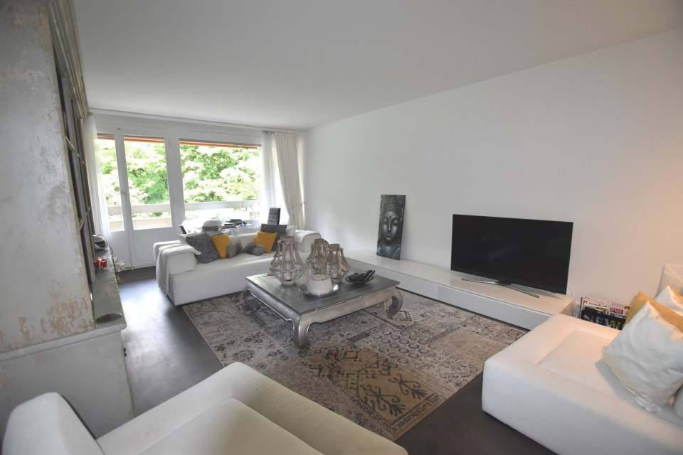 Dans une résidence au chemin des Tulipiers, jouissant d'un magnifique parc boisé, l'appartement d'une surface pondérée de 117 m2, traversant avec deux balcons, jouit d'une tranquillité absolue, tout en étant situé à quelques minutes à pieds de la nouvelle gare du Léman Express des Eaux-Vives et à proximité de toutes les commodités : commerces, crèches, écoles primaires et l'Ecole internationale.