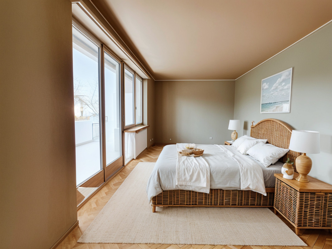 La chambre Master est très spacieuse et bénéficie de son propre balcon et sa salle de bains attenante.