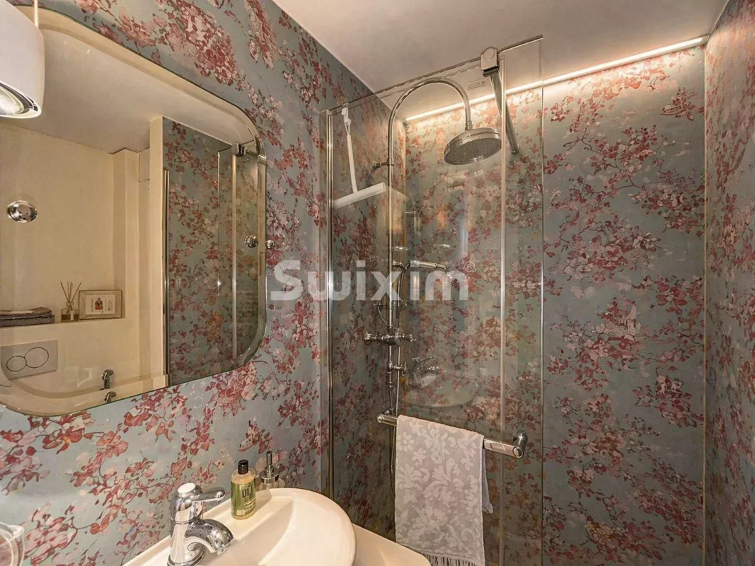 The shower room stands out especially for the quality of its materials: the walls are clad with large, jointless panels, inspired by reproductions of Venetian palaces, creating an atmosphere that is both sophisticated. The whole is complemented by quartz furniture and Swiss-made fittings, a mark of quality.