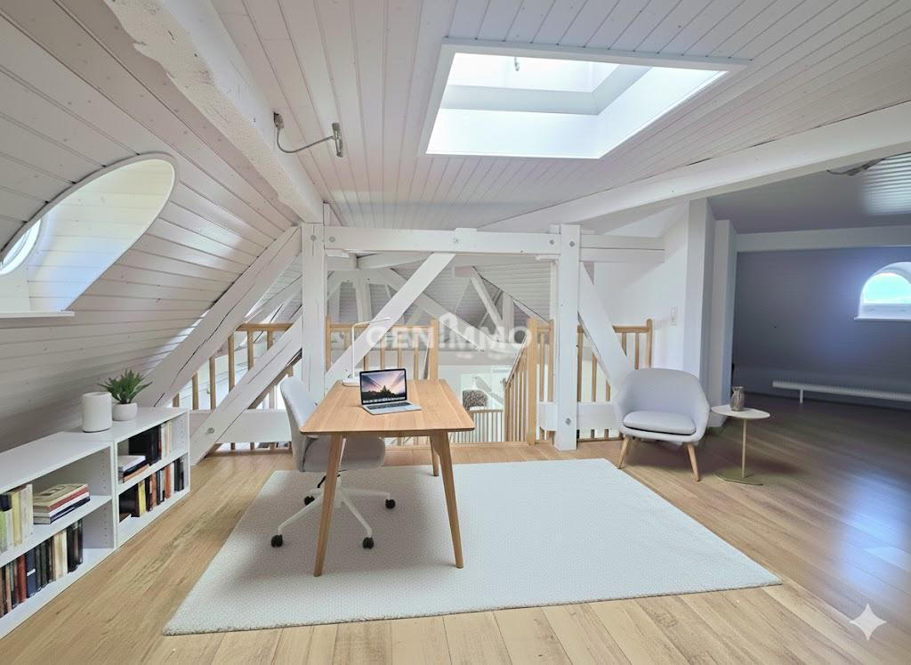 Duplex en attique lumineux et rénové avec cachetAu c?ur d'une petite copropriété de 9 lots construite en 2003, ce duplex en attique entièrement rénové en 2022 séduit par son alliance réussie entre modernité et confort.Dès l'entrée au 1er étage, vous découvrez un vaste espace de vie baigné de lumière, agrémenté d'un poêle à pellets qui crée une atmosphère chaleureuse et conviviale....