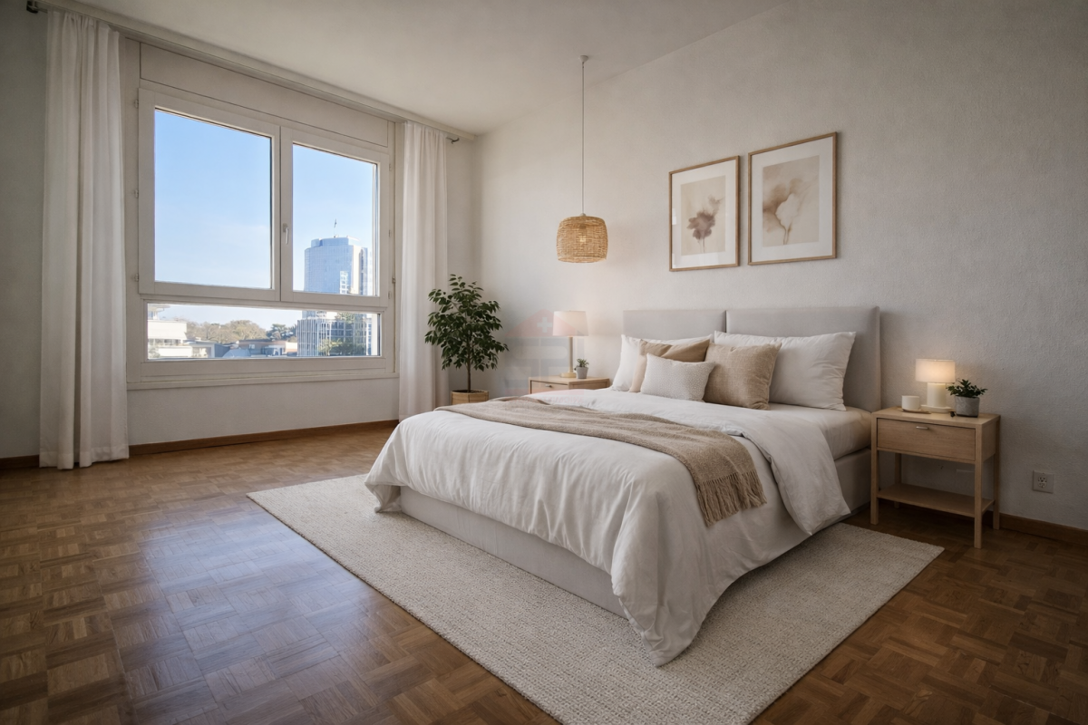 Idéalement situé au coeur du très recherché quartier des Nations, cet élégant appartement de 168 m², niché au 6eme étage d?une résidence PPE parfaitement entretenue, offre un cadre de vie rare alliant sécurité, intimité et potentiel de valorisation.
