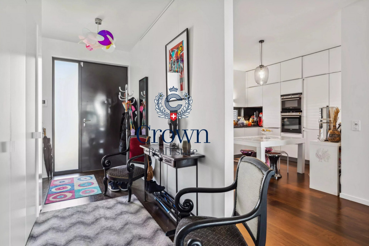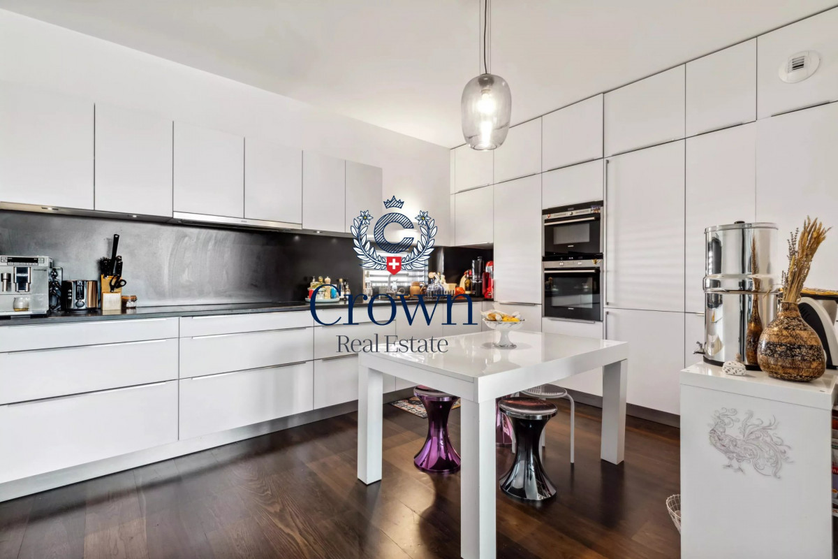In the heart of a well-maintained luxury residence, close to all amenities, this 3-storey penthouse apartment offers on the ground floor a beautiful living room opening onto a generous balcony, a well-equipped kitchen opening onto the living room, and on the 1st floor a sleeping area comprising bedroom I with bathroom I and dressing rooms, bedroom II, bedroom III and bedroom IV sharing shower room II and bathroom III. A wealth of built-in storage space completes the ensemble. The icing on the cake is on the second floor, with a large 100 m2 terrace equipped with a summer kitchen, enjoying an unobstructed view and south-facing exposure. The residence also boasts a fitness room, wellness area, wine cellars and carnotzet. A feeling of being in a hotel all year round.