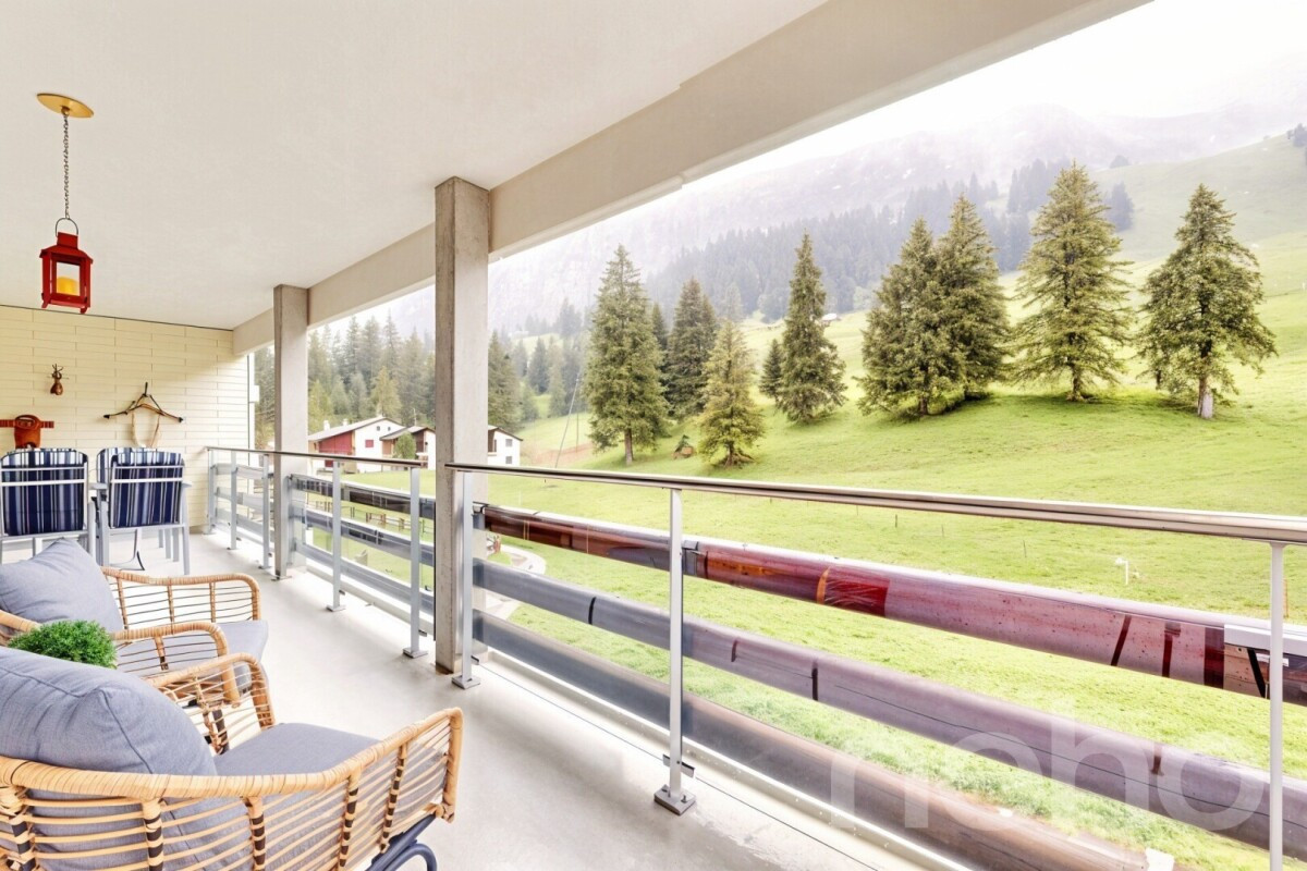 In unmittelbarer Nähe zum Skilift auf der Mörlialp Nr. 15 in Giswil erwartet Sie eine charmante, möblierte 2.5-Zimmerwohnung im 2. Obergeschoss mit rund 60 m² Wohnfläche. Die Liegenschaft vereint alpinen Stil mit modernem Komfort: 2017 wurde die gesamte Wohnung umfassend saniert. Der offene Wohnbereich besticht durch ein gemütliches Cheminée und direkten Zugang zum grosszügigen Balkon mit 18 m² Fläche - ideal, um den Blick ins Grüne oder auf verschneite Hänge zu richten. Zur Ausstattung gehören ein praktischer Skiraum, eine gemeinschaftlich genutzte Waschküche, ein Tischtennisraum sowie ein Autoeinstellplatz in der Tiefgarage mit direktem Zugang zum Haus. Die Raumaufteilung ist durchdacht, das Ambiente ruhig und einladend. Ob als Rückzugsort oder Zweitwohnsitz - diese Immobilie bietet zu jeder Jahreszeit ein behagliches Zuhause an bevorzugter Lage für Menschen mit Sinn für Natur, Komfort und Qualität.