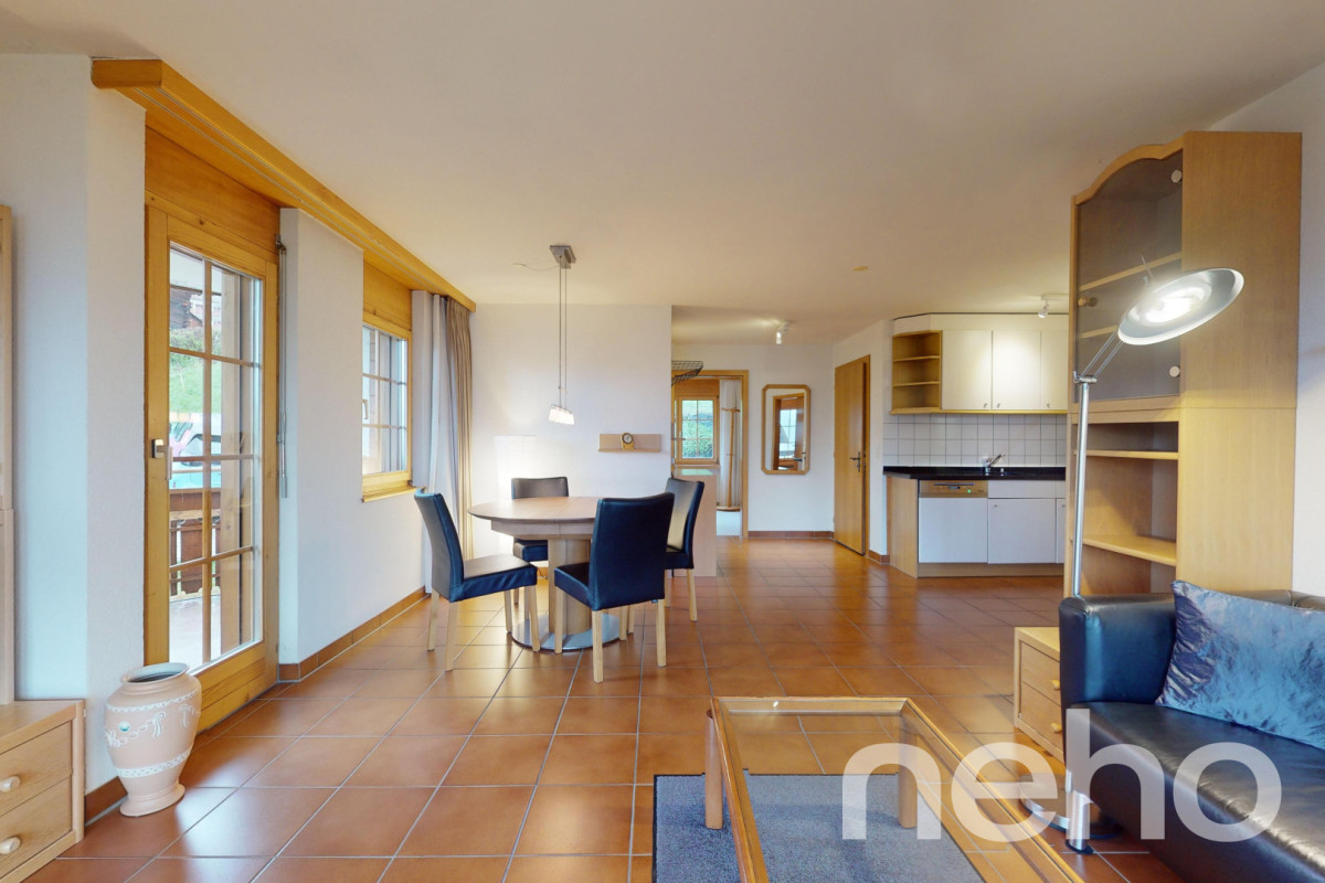 Superbe appartement meublé de 3 1/2 pièces avec deux balcons, à seulement 6 minutes de la télécabine. Cet appartement de rêve est situé au c?ur de Grächen, un petit village de montagne idyllique à 1600 m d'altitude, qui a beaucoup à offrir tant en hiver qu'en été. Particulièrement adapté aux familles, Grächen se trouve sur une terrasse ensoleillée et propose d'innombrables activités de loisirs pour les randonneurs, les amateurs de VTT et les skieurs. Les points forts de l'appartement sont son état soigné, un grand balcon avec une vue magnifique, une cheminée, une situation idéale dans une zone calme et sans circulation, ainsi que la proximité du centre du village, de la télécabine et des commerces. L'appartement dispose également de sa propre machine à laver avec séchoir. Parfait pour les amoureux de la nature et les passionnés de sports d'hiver, il offre une maison confortable et chaleureuse avec un accès de plain-pied sans marches.