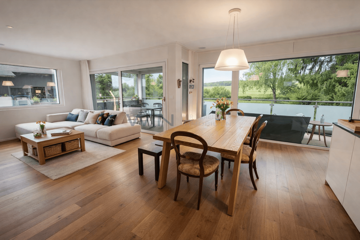 Grosszügige 6.5 Zi-Wohnung auf eigener ganzer Etage!Diese helle und gepflegte 6.5-Zimmer-Wohnung befindet sich in einem ruhigen, familienfreundlichen Quartier, das sowohl zentral gelegen als auch naturnah ist. Mit einer grosszügigen Wohnfläche von rund 145 m² und einer durchdachten Raumaufteilung bietet die Wohnung viel Platz für Familien, Paare oder Menschen mit Homeoffice-Bedarf.Das Herzstück