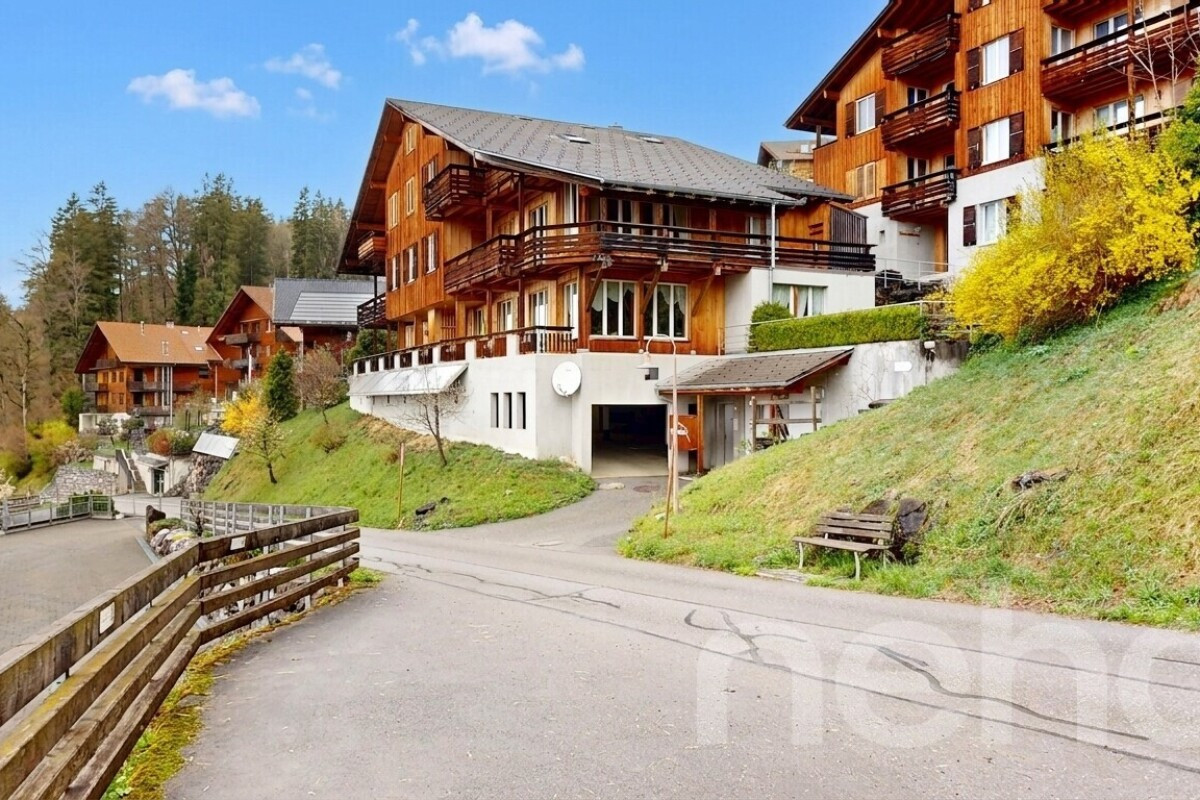 Diese gepflegte 3.5-Zimmerwohnung in Hasliberg Reuti vereint ruhiges, naturnahes Wohnen mit einer einmaligen Ferien- und Freizeitlage inmitten einer beliebten Tourismusregion nahe Skigebieten und zahlreichen Ausflugszielen.Die Wohnung befindet sich im ersten Obergeschoss eines gut erhaltenen Gebäudes in massiver Bauweise aus dem Jahr 1997 und überzeugt durch einen durchdachten Grundriss sowie ein warmes Wohngefühl in ländlicher Umgebung. Dank Lift ist sie bequem erreichbar und bietet einen hindernisfreien sowie rollstuhlgerechten Zugang. Der Eingangsbereich bietet praktische Garderobenmöglichkeiten und führt weiter zu zwei Schlafzimmern sowie einem Gäste WC und einem Badezimmer mit Dusche und integriertem Waschturm.Das Herzstück der Wohnung bildet der helle Wohn- und Essbereich mit Zugang zum grossen Balkon sowie zur weitläufigen Gartenfläche von 25 m2 Hier geniessen Sie eine beeindruckende Panoramasicht auf die umliegende Bergwelt und bei schönem Wetter einen Blick bis zum Brienzersee.Die Küche ist mit Glaskeramikkochfeld Kühlschrank und Geschirrspüler ausgestattet und bietet direkten Zugang zum Aussenbereich.Ein besonderes Plus ist der auf gleicher Ebene befindliche Kellerraum welcher vielseitig genutzt oder sogar zu einem zusätzlichen Badezimmer ausgebaut werden kann.Zur Liegenschaft gehören zudem ein Einstellhallenplatz mit Ladestation für Elektrofahrzeuge ein gemeinschaftlicher Skiraum sowie eine gemeinschaftliche Waschküche im oberen Gebäude.Die Ausstattung umfasst Eichenparkett in Wohn- und Küchenbereich, Teppichböden in den Schlafzimmern sowie Fliessen in den Nasszellen. Ergänzt wird dies durch eine zuverlässige Ölheizung mit Radiatorenverteilung sowie Holz-Alu Fenster mit Zweifachverglasung.Im Winter ermöglicht die Lage bei ausreichender Schneelage eine direkte Skiabfahrt bis vor die Haustüre. Diese Wohnung eignet sich ideal für alle die Ruhe, Natur und Erholung suchen, sei es als Hauptwohnsitz oder als Ferienimmobilie in den Bergen.