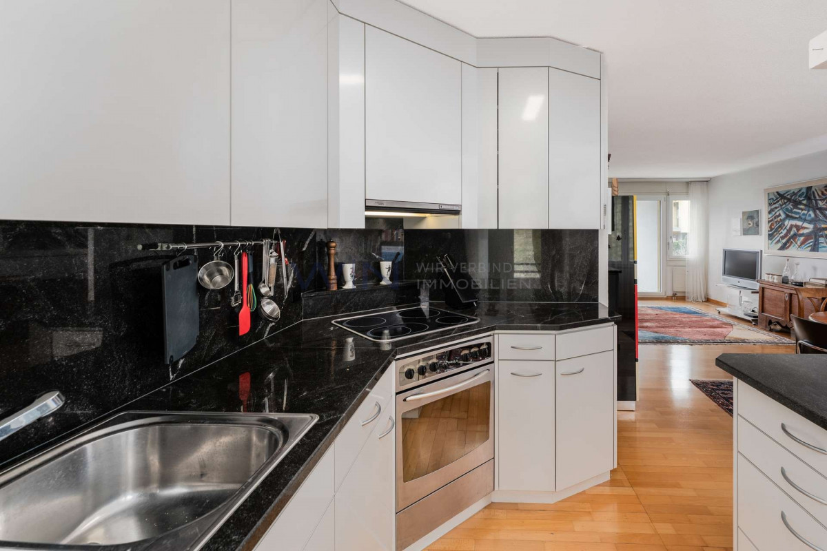 Schon beim Eintreten spürt man die besondere Leichtigkeit dieses Zuhauses. Der offene Wohn- und Essbereich mit integrierter Küche bildet das Herzstück der Wohnung. Ein Raum, der Leben ausstrahlt, hier wird gekocht, gelacht, entspannt und zusammen gelebt. Die offene Gestaltung schafft Grosszügigkeit und verbindet die einzelnen Bereiche auf natürliche Weise.