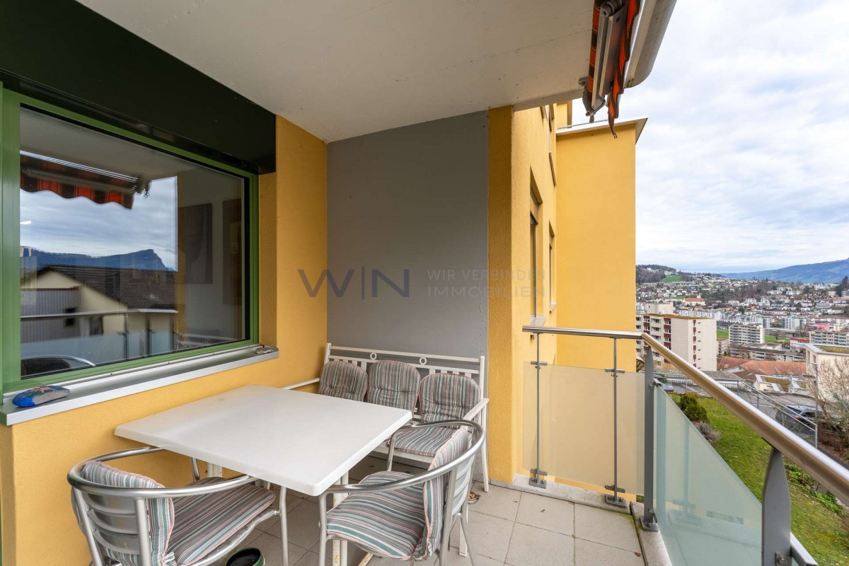Zwei Balkone erweitern den Wohnraum nach draussen. Ob ein ruhiger Morgenkaffee in der frischen Luft oder ein entspannter Abend mit Blick in die Weite, hier entstehen kleine Momente, die den Alltag besonders machen.