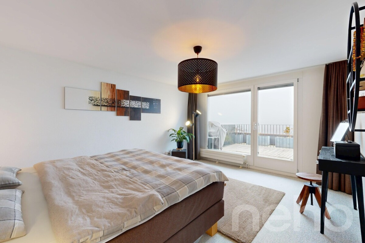 Lichtdurchflutete Terrassenwohnung mit Weitblick & KomfortDiese aussergewöhnliche Wohnung begeistert mit 170 m² Nettowohnfläche und einer 55 m² grossen Terrasse, die einen traumhaften Weitblick eröffnet. Der lichtdurchflutete Wohnbereich mit stilvollem Schwedenofen schafft eine behagliche Atmosphäre und geht nahtlos in die moderne, offen gestaltete Küche über - ideal für gemeinsame Stunden...