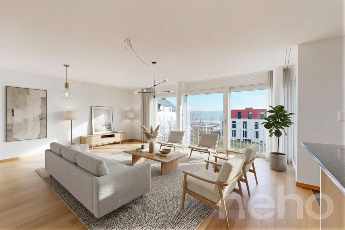 Découvrez ce magnifique appartement baigné de lumière, idéalement orienté plein sud et offrant une vue dégagée sur le lac.Implanté dans un environnement calme et agréable, ce bien bénéficie d'une situation privilégiée à proximité immédiate de toutes les commodités. Son agencement optimisé et ses volumes généreux en font un lieu de vie aussi fonctionnel que confortable.Parfaitement entretenu, cet appartement séduira aussi bien une famille qu'un couple à la recherche de sérénité et de qualité de vie.D'une surface habitable de 109 m², il se compose de 4,5 pièces, dont trois belles chambres, deux salles de bains modernes et une cuisine entièrement équipée, ouverte sur un séjour lumineux avec accès direct à un balcon de 12 m², idéal pour profiter des beaux jours.Situé au premier étage d'un immeuble avec ascenseur, ce bien est complété par une grande cave, une place de parc en garage commun ainsi qu'une place de jeux, offrant un cadre de vie pratique et convivial.N'attendez plus pour venir le découvrir : contactez-nous dès aujourd'hui pour organiser une visite et laissez-vous séduire par tout son charme.