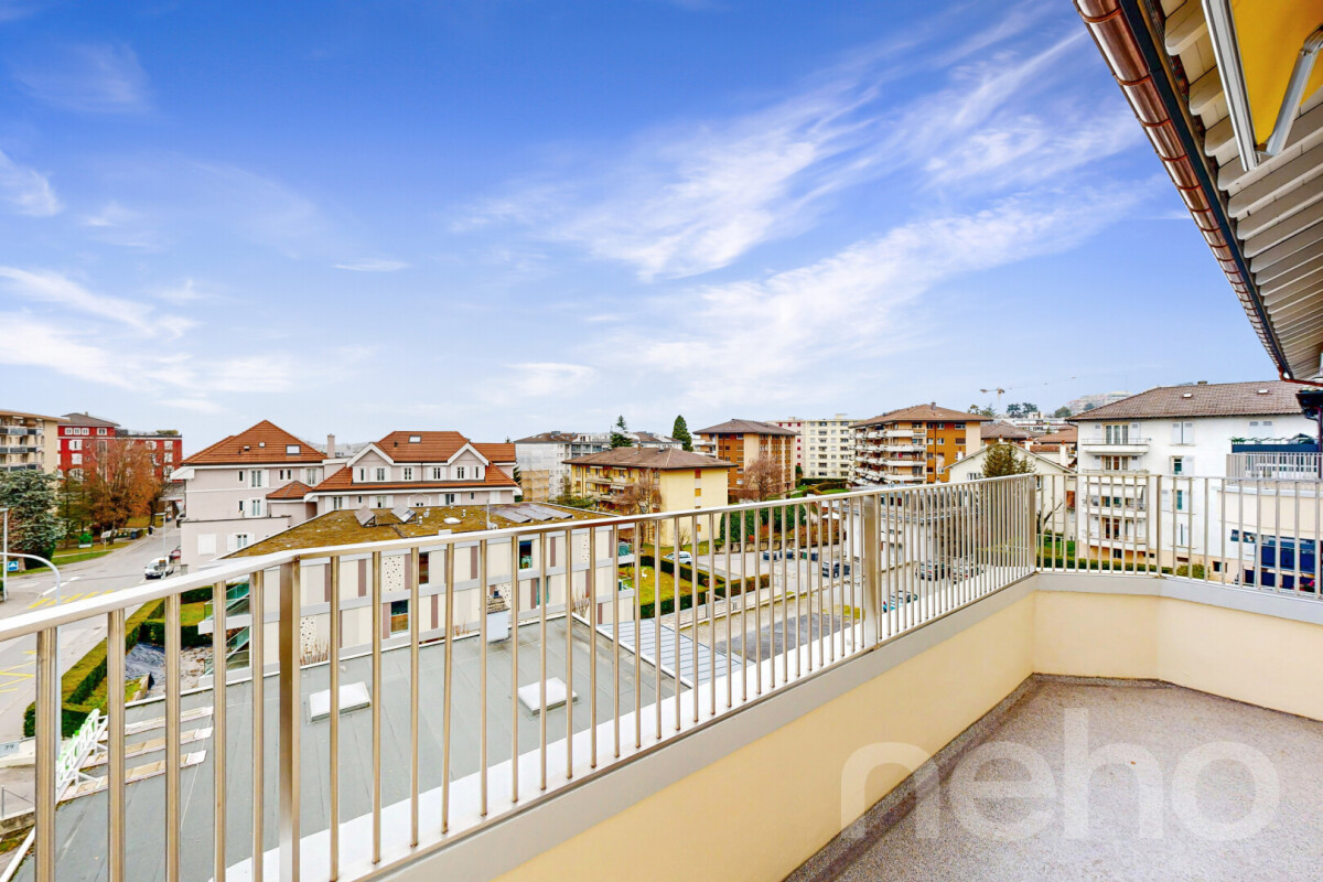 Opportunité unique au centre de Montreux avec ce joli appartement de 2,5 pièces d'environ 65 m2 + une grande terrasse d'environ 40 m2 et un balcon d'environ 5 m2 au bénéfice d'une jolie vue sur le lac Léman et les Alpes.Situé au 4ème étage, ce bien partiellement rénové en 2022 se compose de la manière suivante:- Un hall d'entrée spacieux avec armoire intégrée à 2 portes.- Un espace séjour...