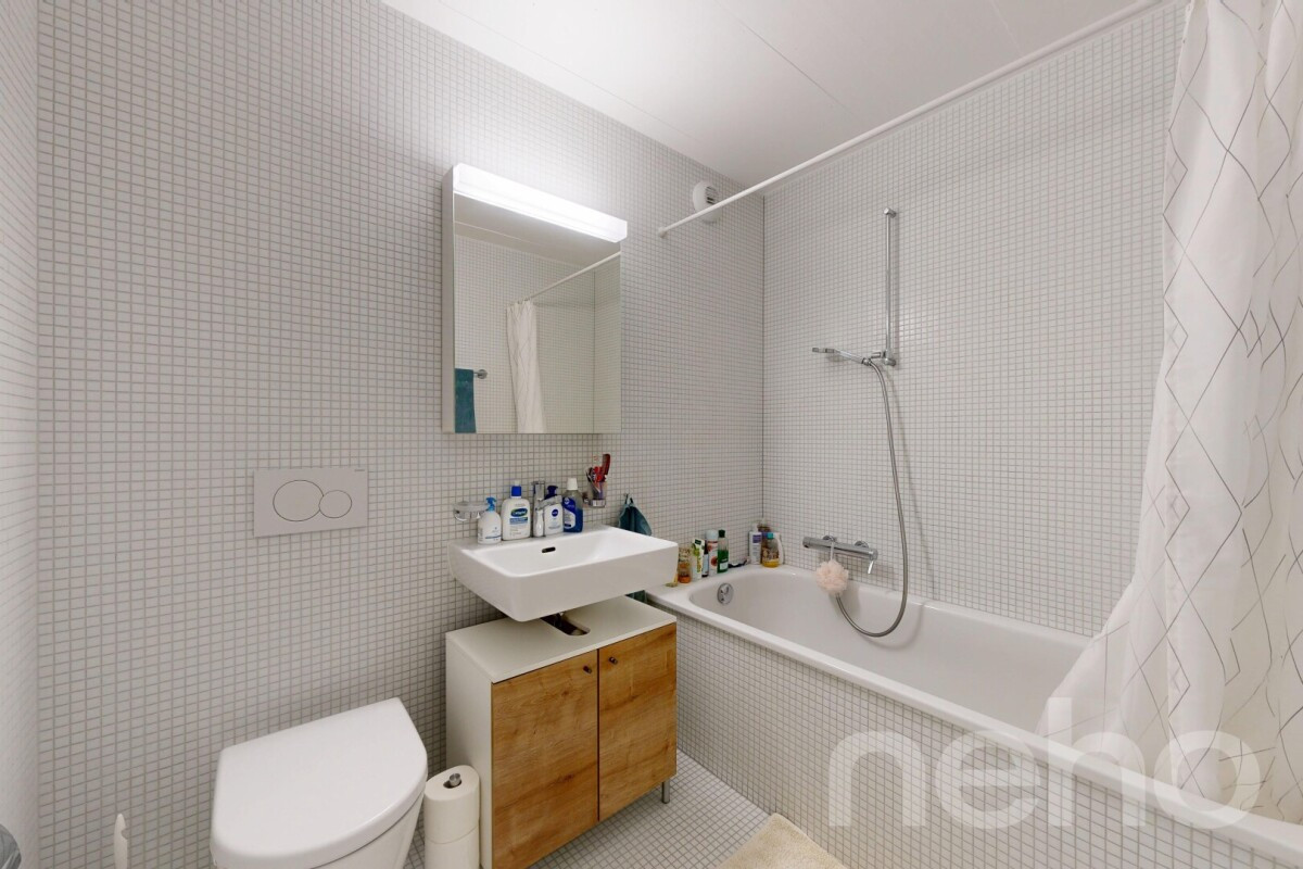 Ideally located close to public transport and amenities, this beautiful, modern 2.5-room flat with a net living area of 56 m² is an excellent opportunity not to be missed.Perfect as a first purchase or as a rental investment, it comprises a spacious, bright living room with a fully equipped open-plan kitchen, opening onto a pleasant terrace surrounded by greenery. A comfortable bedroom and a bathroom with bathtub complete this property.Benefiting from recent construction, this flat guarantees remarkable energy performance thanks to an efficient pellet boiler.A visit is a must!