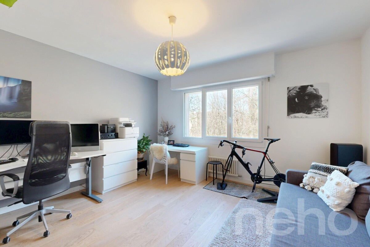 Grâce à son orientation plein sud, l'appartement bénéficie d'une vue dégagée et sans vis-à-vis, apportant une véritable sensation de liberté et d'ouverture. Il se compose de 6,5 pièces, comprenant quatre chambres spacieuses et trois salles d'eau, offrant un équilibre idéal entre convivialité et intimité.Ce cadre de vie conviendra parfaitement à une famille ou à toute personne recherchant un environnement calme, lumineux et soigné, à proximité du centre-ville.Atout majeur : l'immeuble fera prochainement l'objet d'une rénovation complète, comprenant :