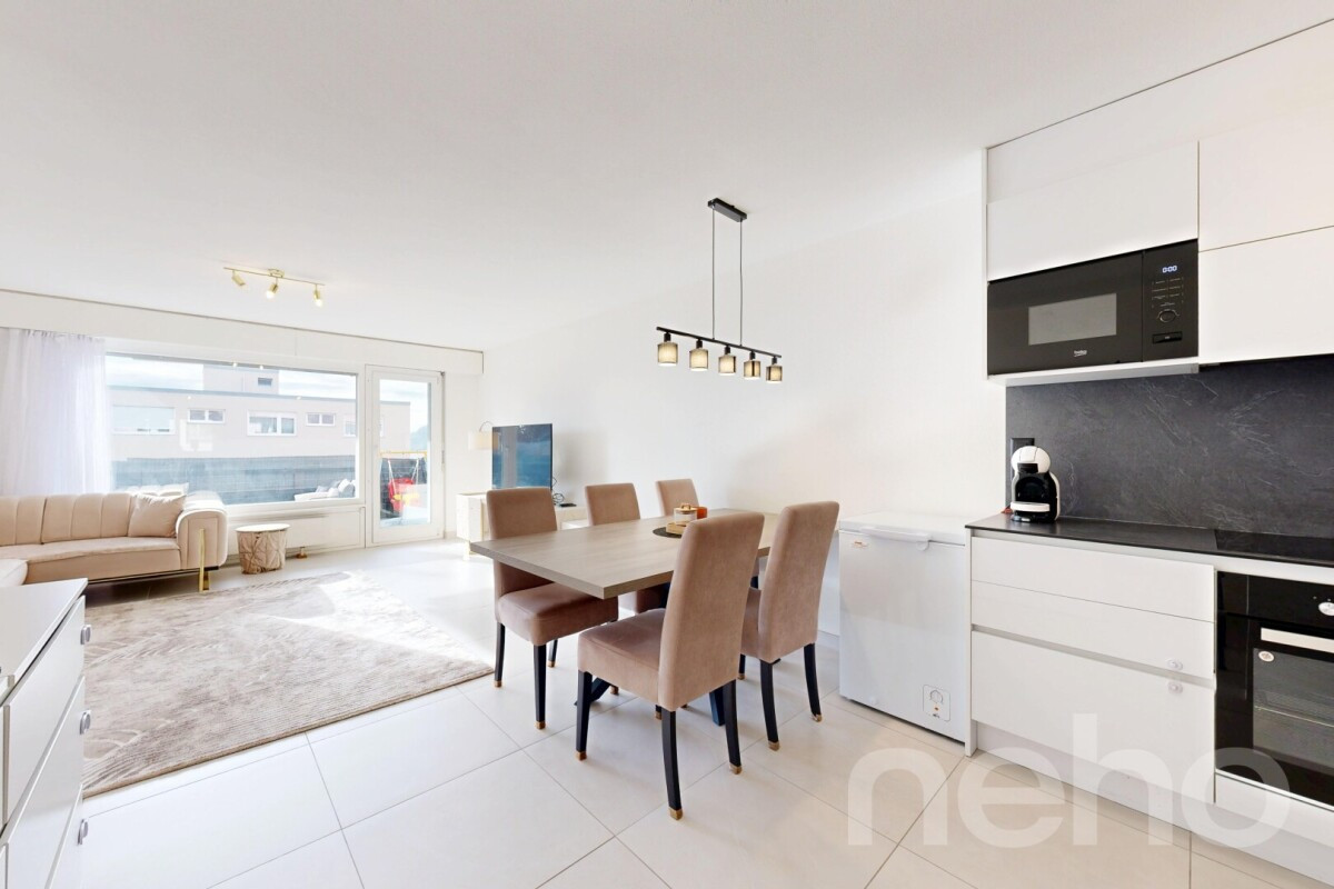 Très bel appartement comme neuf avec balcon et garage !Situé au 2ème étage d'un immeuble en PPE de 8 lots, cet appartement de 3,5 pièces a été entièrement rénové en 2015 avec des matériaux de qualité, offrant un cadre de vie moderne et raffiné.Baigné de lumière naturelle, il bénéficie d'une jolie vue dégagée, créant une atmosphère paisible et agréable au quotidien.Implanté au...