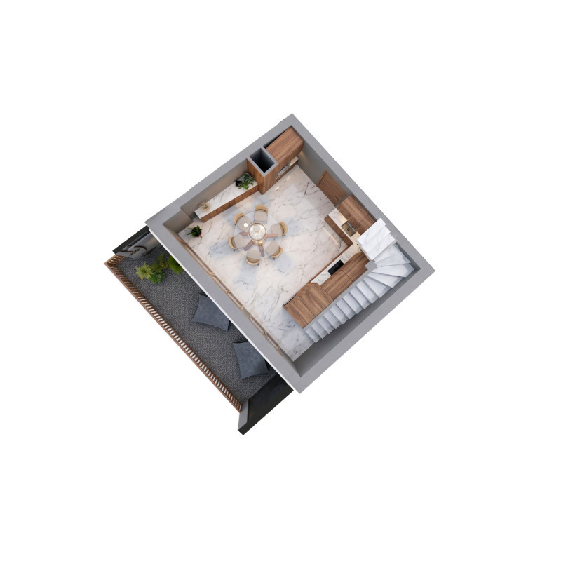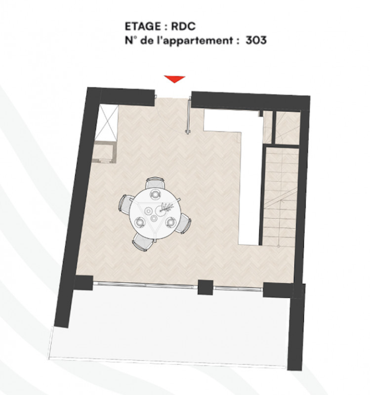 Pensé comme une véritable maison sur deux niveaux, le lot 303 offre une distribution claire et équilibrée, favorisant à la fois la convivialité et l’intimité.
