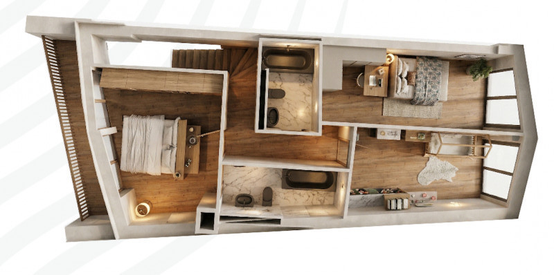 • Configuration duplex, idéale pour structurer les espaces jour et nuit