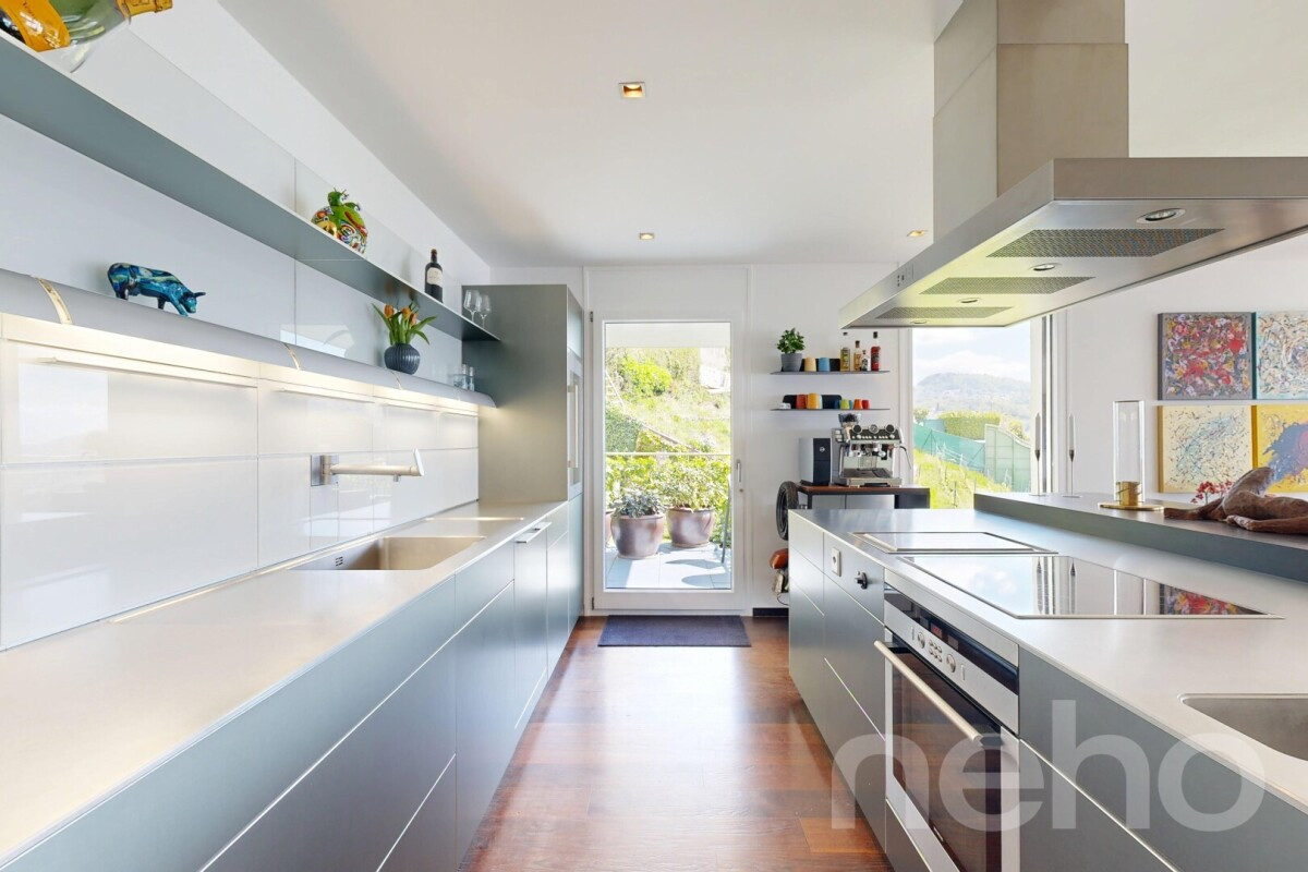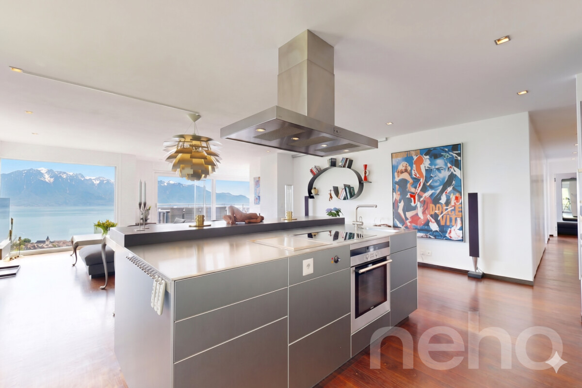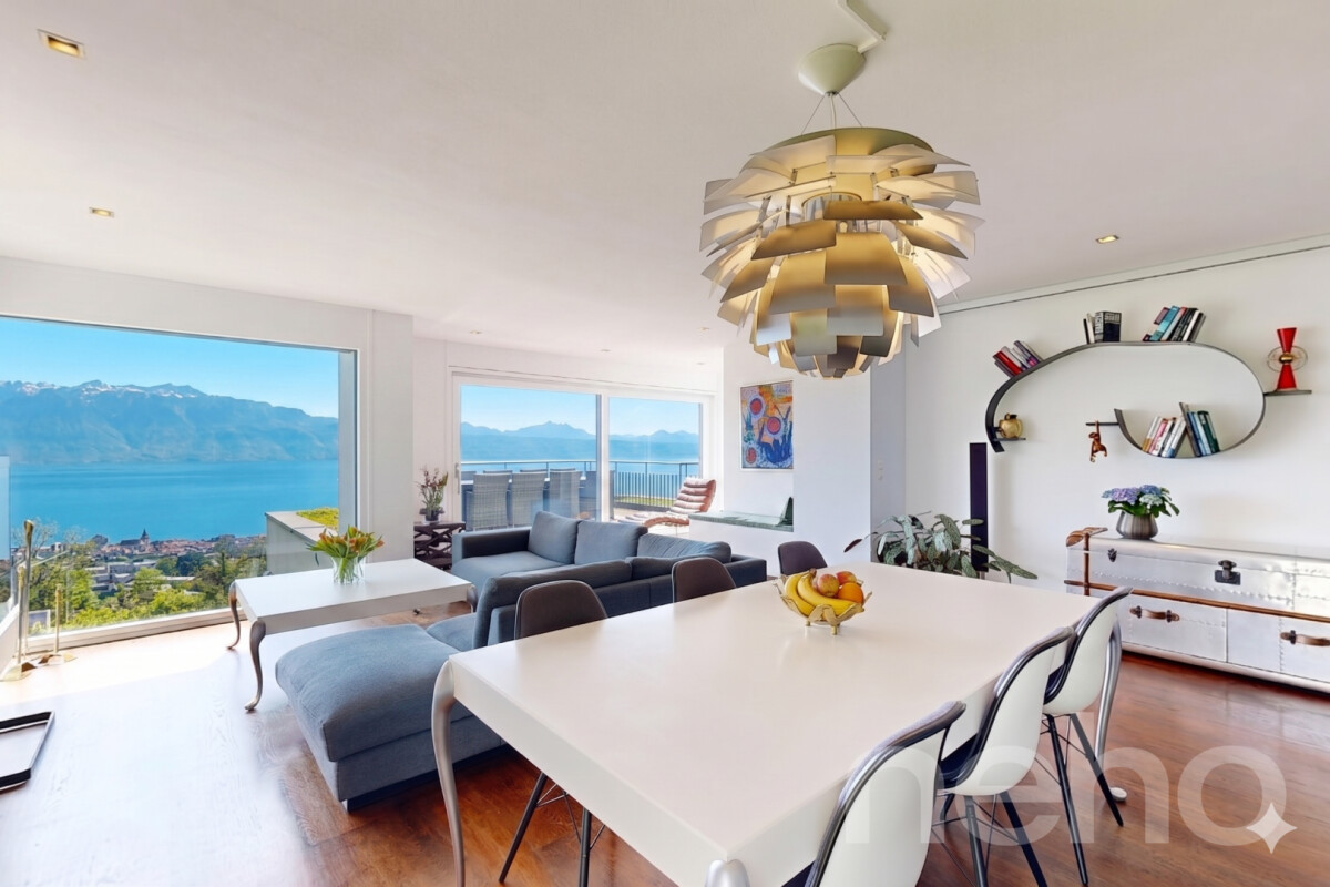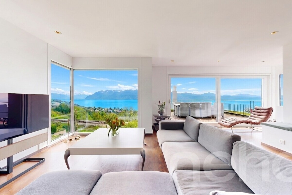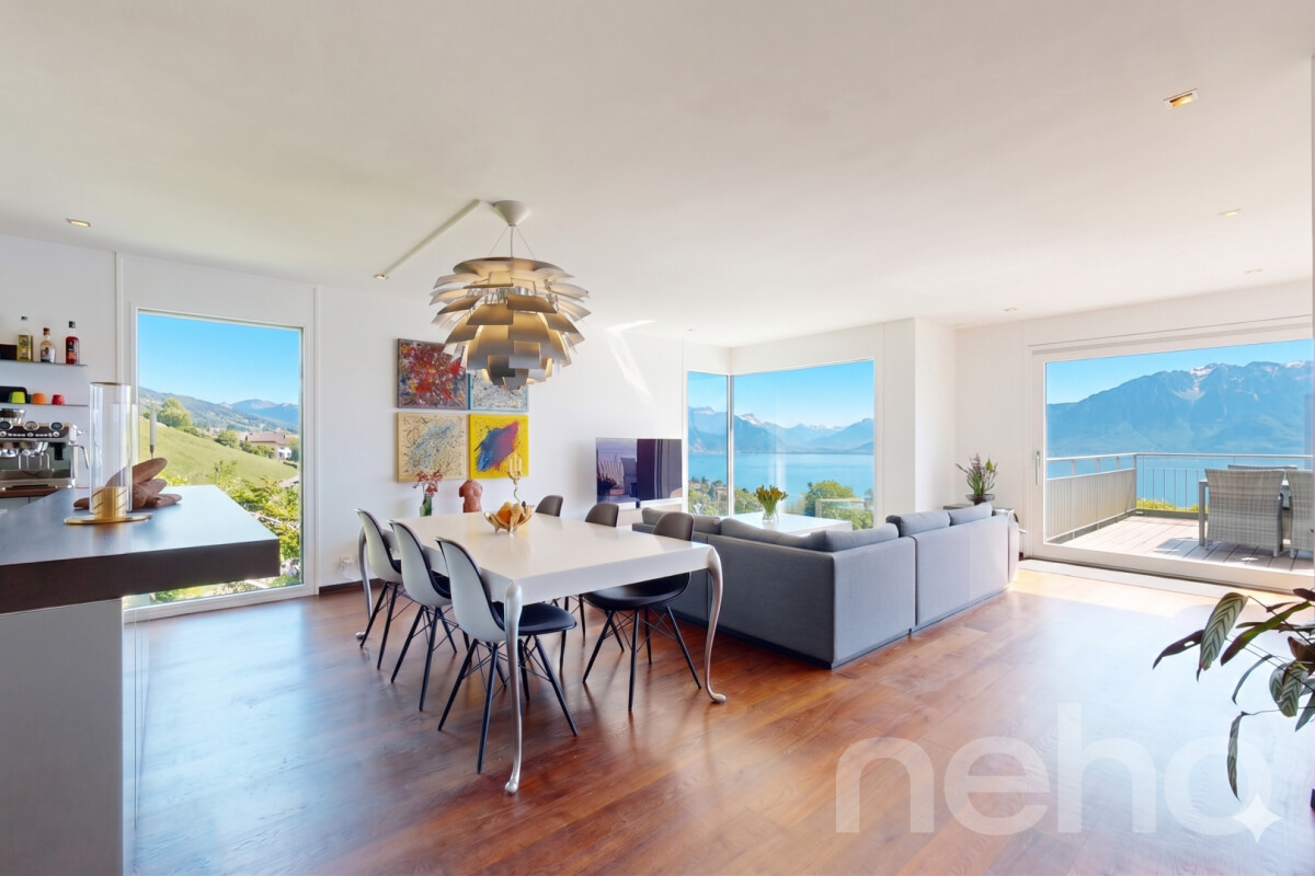 Découvrez ce magnifique appartement offrant une vue imprenable sur les montagnes et le lac, idéal pour les familles à la recherche d'un cadre de vie exceptionnel. Niché au c?ur du Lavaux, cet espace lumineux bénéficie d'une exposition sud qui inonde les pièces de lumière naturelle.Avec ses 4,5 pièces et une surface pondérée de 190m², cet appartement rare sur le marché se distingue par son bon entretien et sa proximité avec toutes les commodités essentielles. La grande pièce à vivre s'ouvre sur une cuisine entièrement équipée de matériel Bulthaub b3 avec îlot central, menant à une splendide terrasse de 100m² où le panorama alpin vous coupera le souffle.L'espace nuit comprend deux chambres spacieuses, une salle de bain, ainsi qu'une suite parentale avec dressing et salle de bain privative. Un ascenseur privatif vous offre un accès direct à l'appartement, ajoutant à son caractère unique et prestigieux.Pour parfaire le tout, deux places de garage, une place de stationnement extérieure couverte et deux grandes caves sont inclus.Ne manquez pas l'occasion de découvrir ce bien d'exception. Contactez-nous dès aujourd'hui pour organiser une visite et laissez-vous séduire par ce cadre enchanteur.