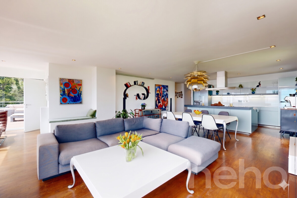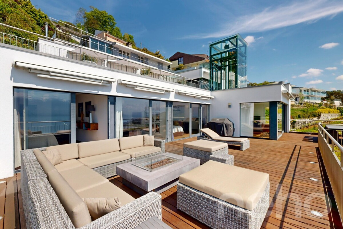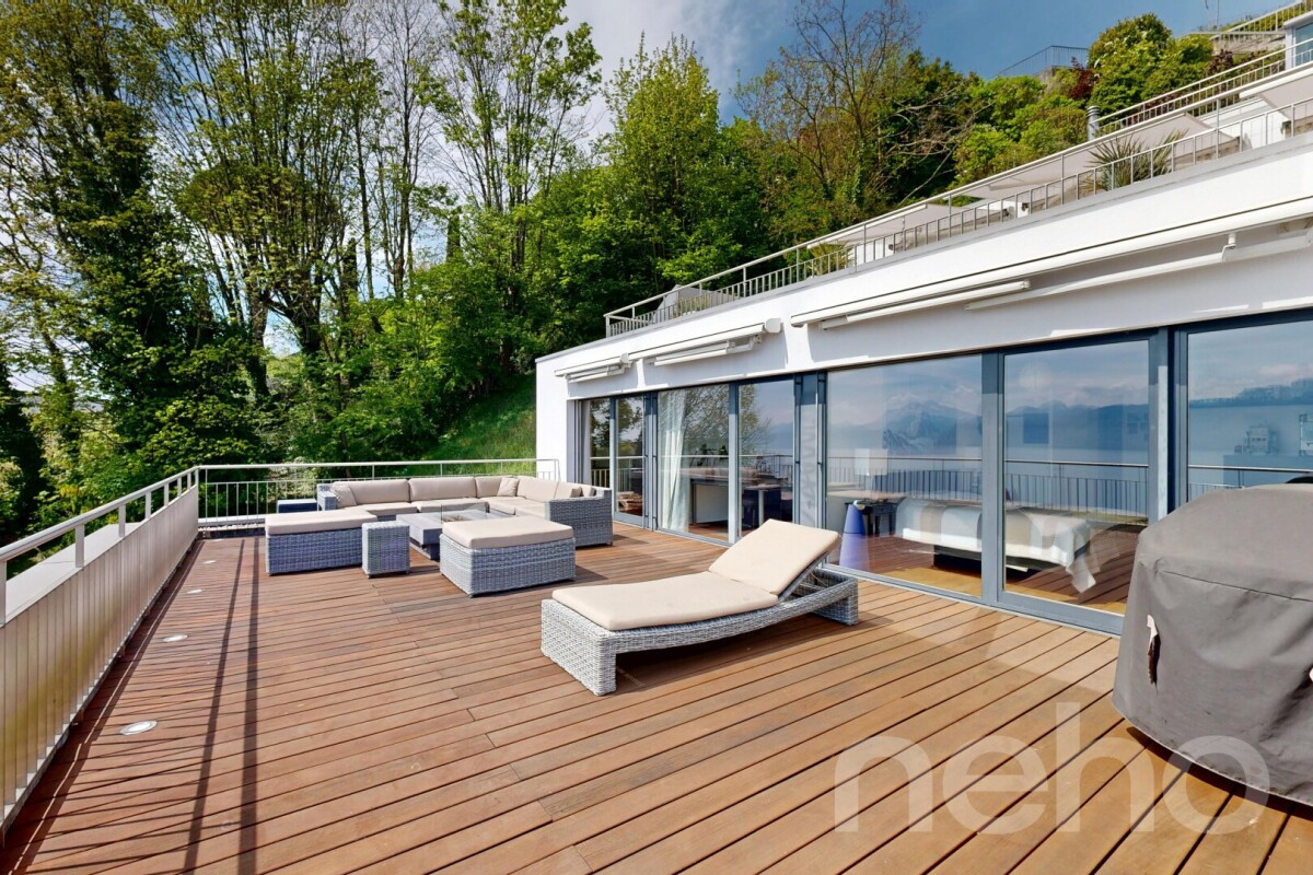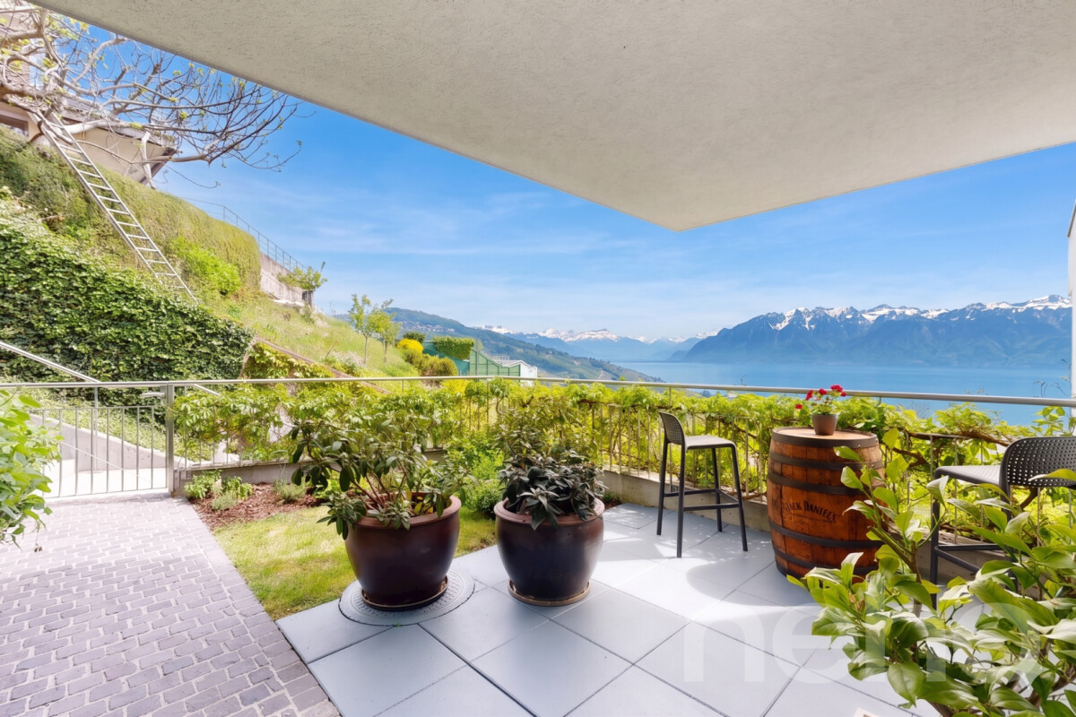 Discover this magnificent apartment offering breathtaking views of the mountains and the lake, ideal for families seeking an exceptional living environment. Nestled in the heart of Lavaux, this bright space benefits from a south-facing aspect that floods the rooms with natural light.With its 4.5 rooms and a weighted floor area of 190m², this rare property on the market stands out for its good condition and proximity to all essential amenities. The large living area opens onto a fully fitted Bulthaub b3 kitchen with a central island, leading to a splendid 100m² terrace where the alpine panorama will take your breath away.The sleeping area comprises two spacious bedrooms, a bathroom, and a master suite with a walk-in wardrobe and en-suite bathroom. A private lift provides direct access to the flat, adding to its unique and prestigious character.To top it all off, two garage spaces, an outdoor covered parking space and two large storage rooms are included. Don't miss the opportunity to discover this exceptional property. Contact us today to arrange a viewing and let yourself be charmed by this enchanting setting.