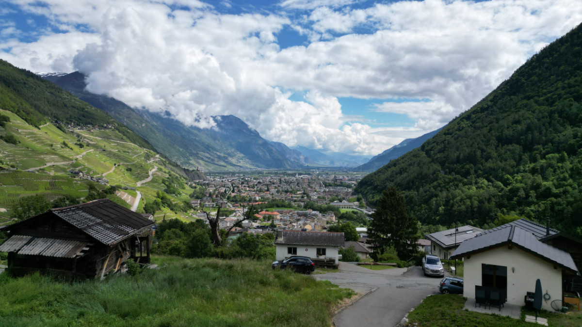 Vue imprenable sur la plaine du Rhône, la ville de Martigny et les vignobles de Plan-Cerisier