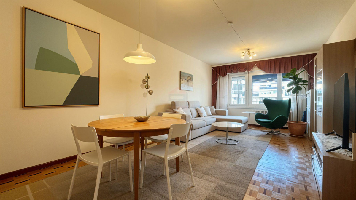 Dès l'entrée, vous découvrez un vaste séjour baigné de lumière naturelle, offrant un espace de vie chaleureux et convivial. Celui-ci s'ouvre sur un grand balcon qui relie également la chambre principale, parfait pour profiter des beaux jours, partager un repas en extérieur ou simplement se détendre.