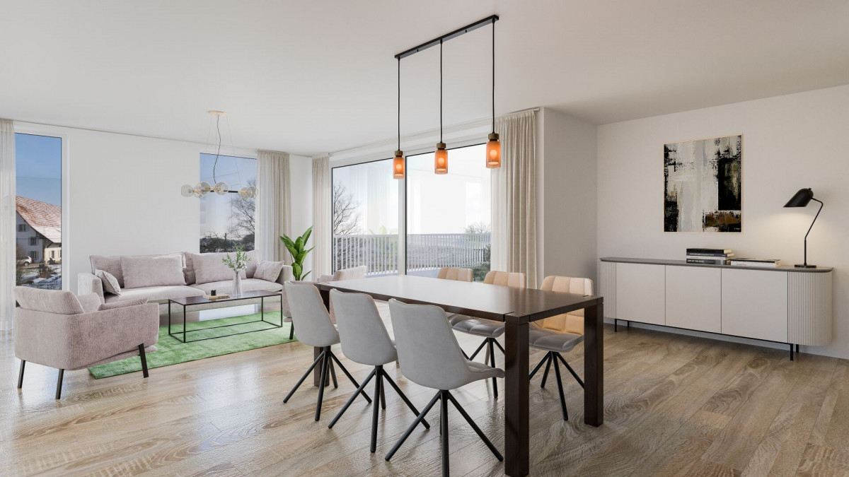 À Payerne ? Appartement 3.5 pièces moderne avec balconDans une résidence construite en 2018, cet appartement de 3.5 pièces, en parfait état, offre un cadre de vie contemporain et lumineux au c?ur d'un environnement paisible. Situé dans un immeuble récent, il séduit par sa disposition fonctionnelle et sa luminosité.L'espace de vie comprend un grand salon/salle à manger de plus de 23 m² prolongé...